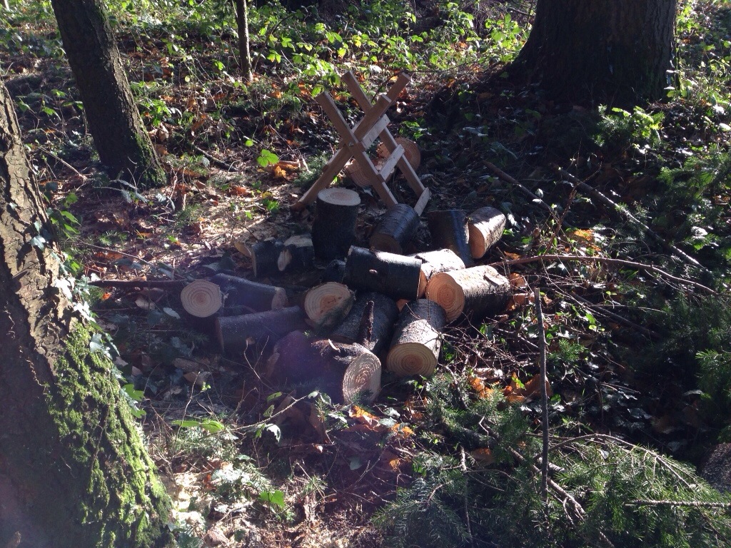La tempête récente ayant fait tomber de grosses branches des grands pins, plusieurs heures furent nécessaires pour les débiter et nettoyer un peu la forêt.