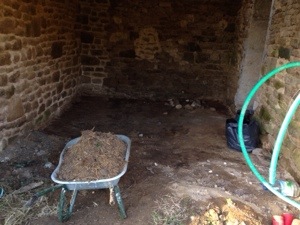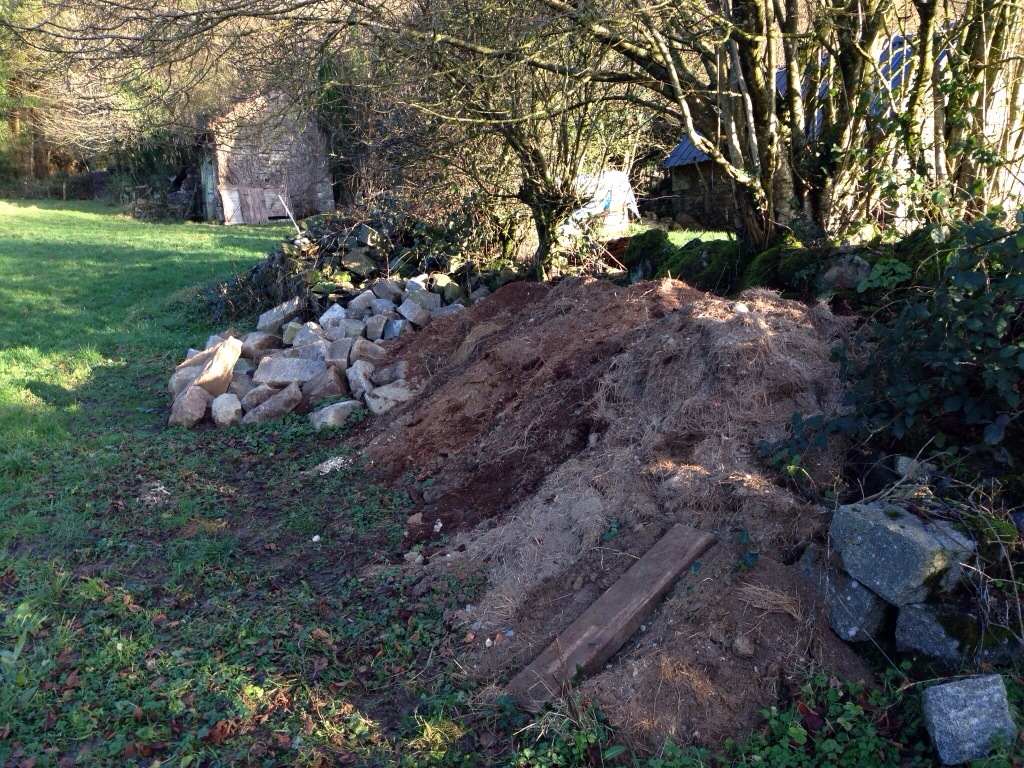 Nous avons encore charié un certain nombre de brouettes de foin poussiéreux, de bois en décomposition et de pierres en tout genre… Le tas commence à être impressionnant :