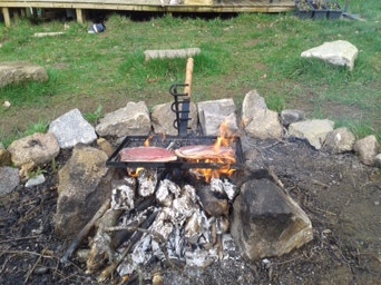 Au programme de cette journée : du soleil, quelques nuages et un tout petit peu de pluie. Également au programme, barbecue avec la potence et la grille récupérées chez l’Oncle Michel : hyper pratiques et très adaptées à nos nombreux barbecue.