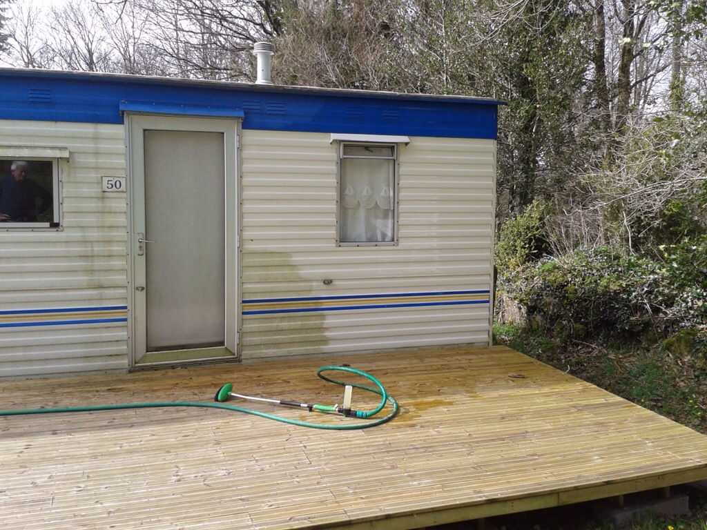 Puisque le printemps était là, nous avons fait des travaux de circonstance : grand nettoyage. Tout l’extérieur du mobil-home y est passé :