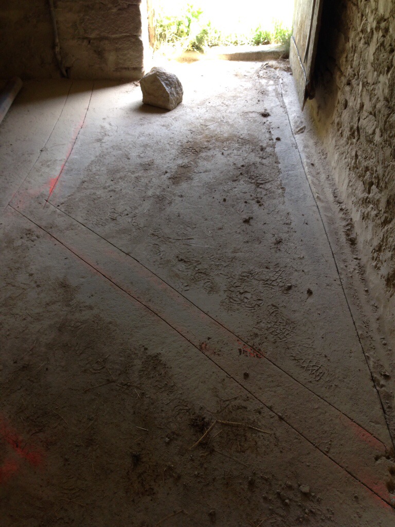 La deuxième partie de la tranchée passe dans l’ancienne dalle bétonnée, que j’ai découpée au lapidaire….