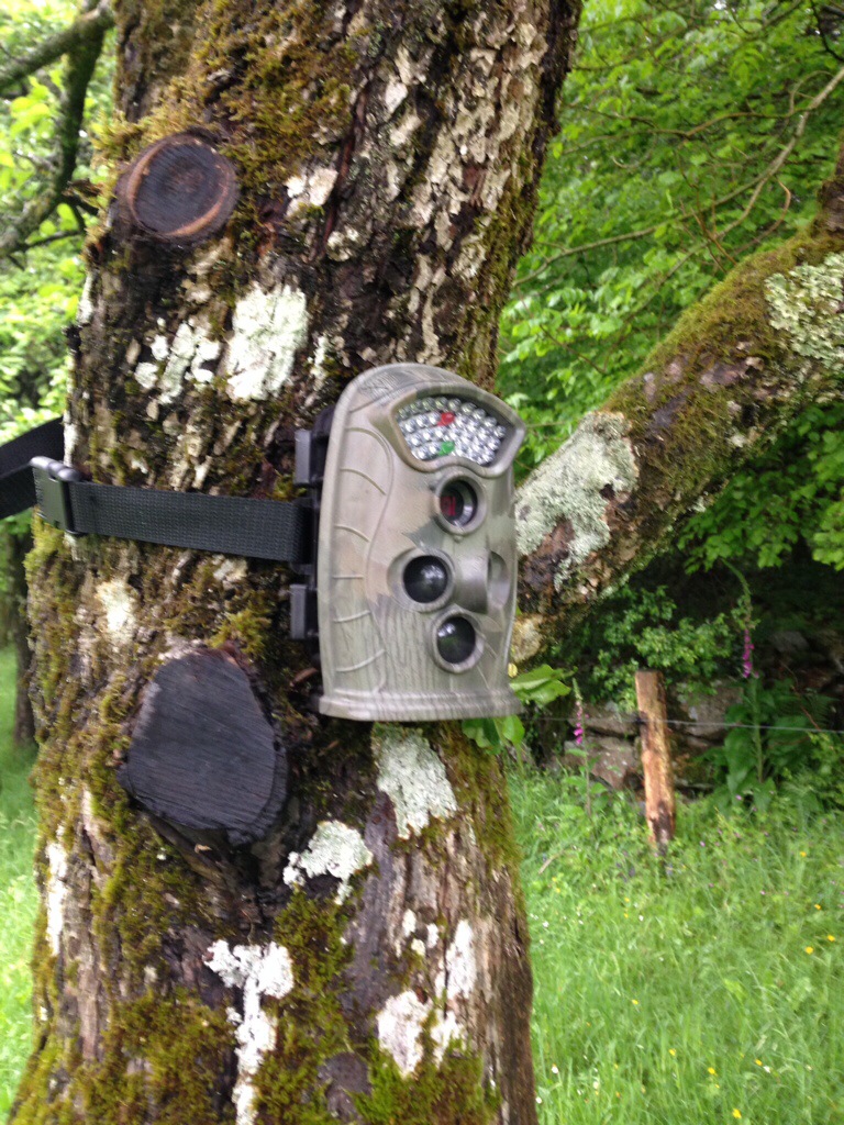 Enfin, et avant de repartir, nous avons fixé à un pommier la petite caméra qui devrait capturer (photographiquement!) les petites bêtes qui traversent le champs mais surtout qui se régalent des feuilles de nos jeunes arbustes fraîchement plantés 🙂