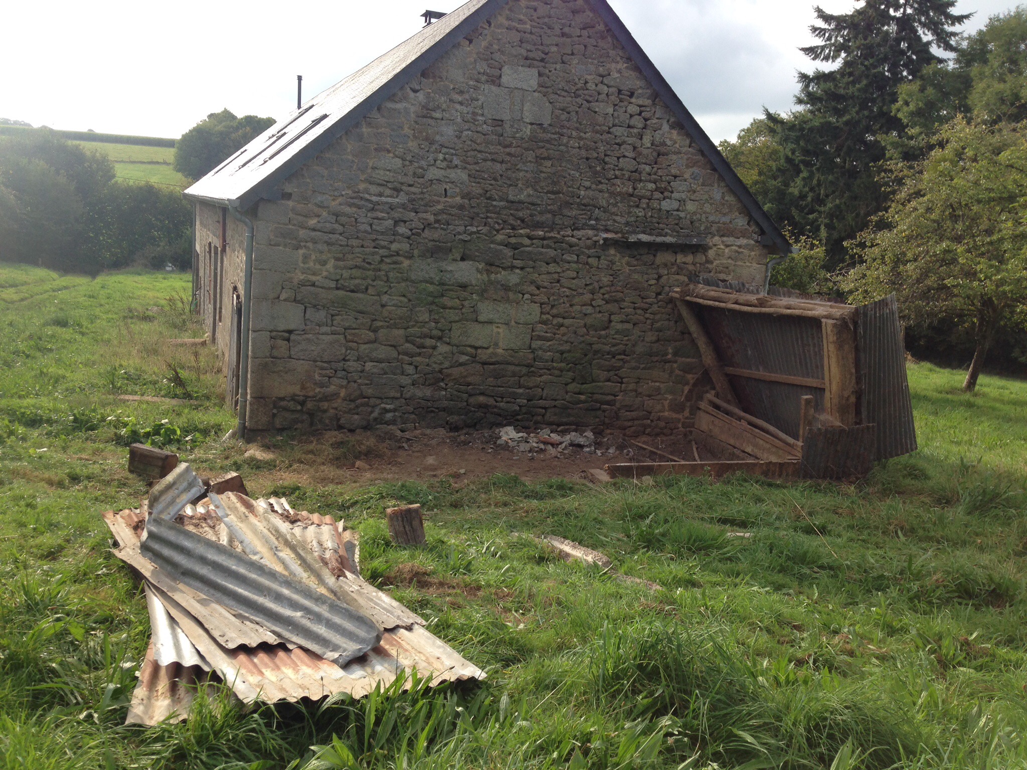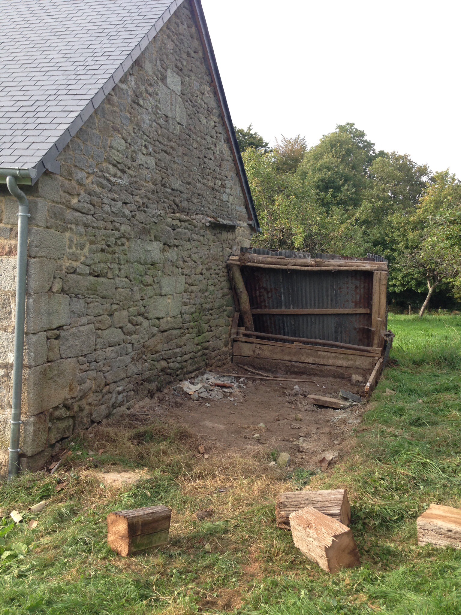 Pour préparer les travaux de terrassement extérieurs, la journée de samedi à été consacrée au démantèlement de l’abris extérieur. Les poutres étaient vieilles mais ont parfois bien résisté. Le traffic a bien aidé à faire tomber les dernières poutres récalcitrantes, en toute sécurité.