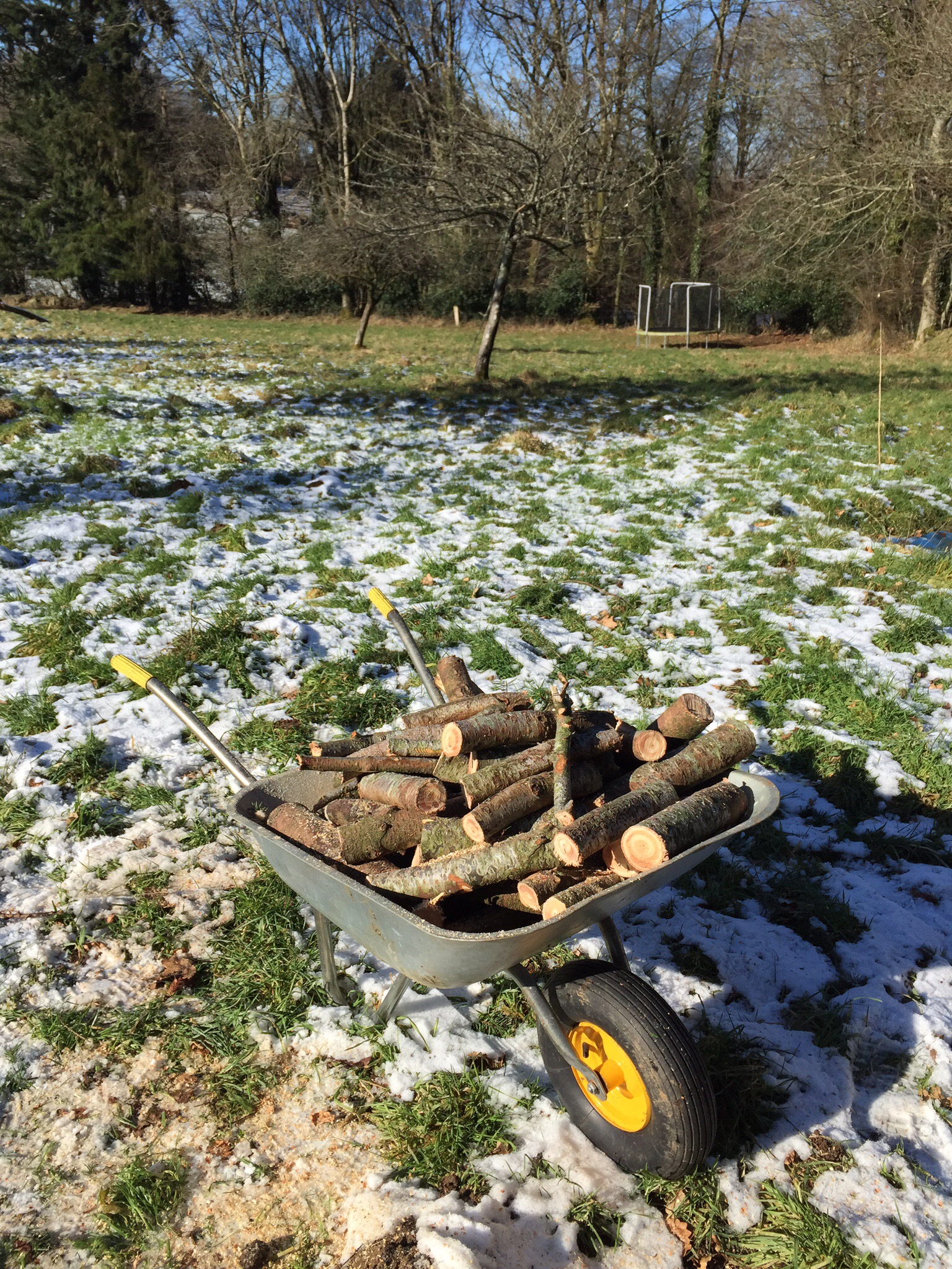 Mais cette fois ci, le sol gelé empêche de ramasser les détritus, c’est donc aux nombreuses branches d’arbre que nous nous sommes attaqués.