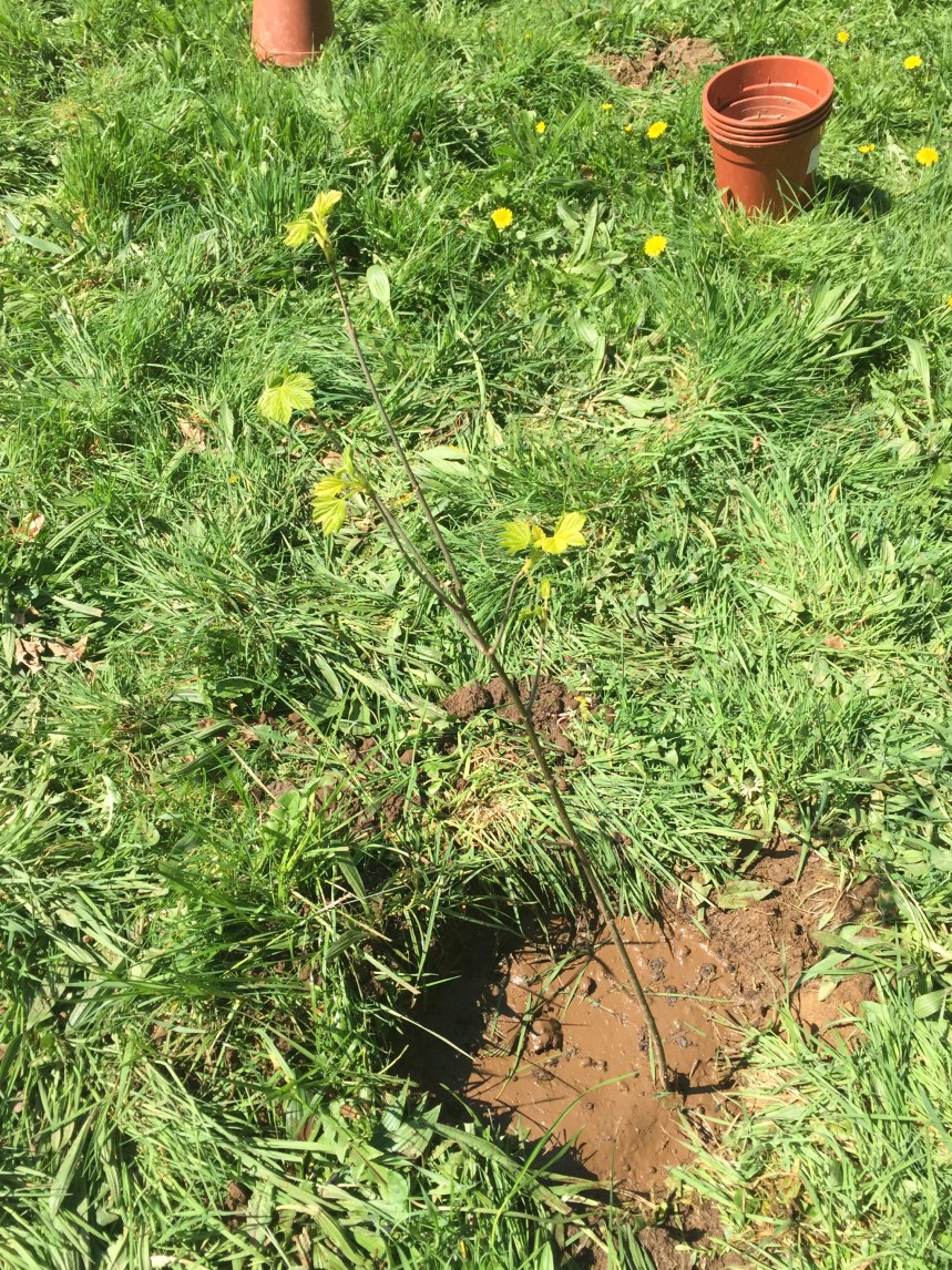 Aujourdhui, l’objectif était de replanter les pousses d’arbres récupèrées chez Jérôme et Elodie le week-end dernier (chêne, Noyer, Cognacier)… Une dizaine de futurs nouveaux arbres!