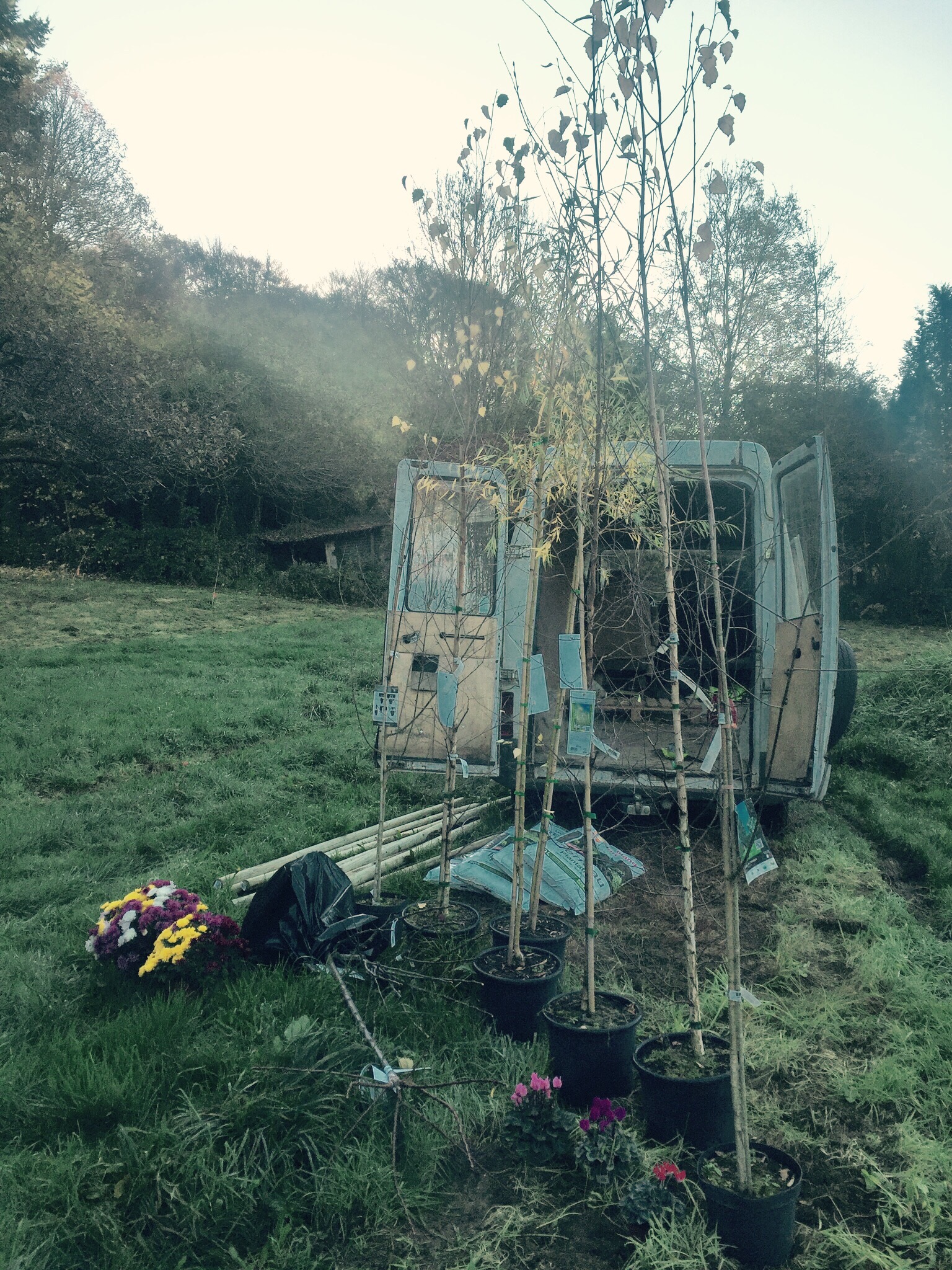 Un beau week-end d’automne propice à planter quelques nouveaux arbres sur le terrain: 5 boulots (dont deux boulots de l’Hymalaya), deux saules pleureurs, 2 pommiers et un abricotier… Avec en cadeau bonus quelques fleurs pour refaire les jardinières de la terrasse du mobile-home
