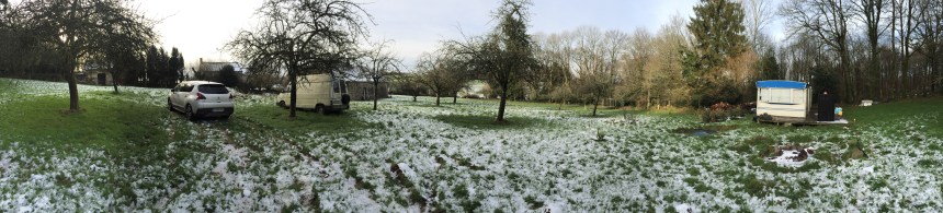 Fraîcheur ce dimanche avec 0 degrés en arrivant le matin, guère plus de 5 degrés durant l’après midi, mais surtout de la neige encore présente depuis Vendredi… On avait tous revêtus 4 couches de vêtements.
