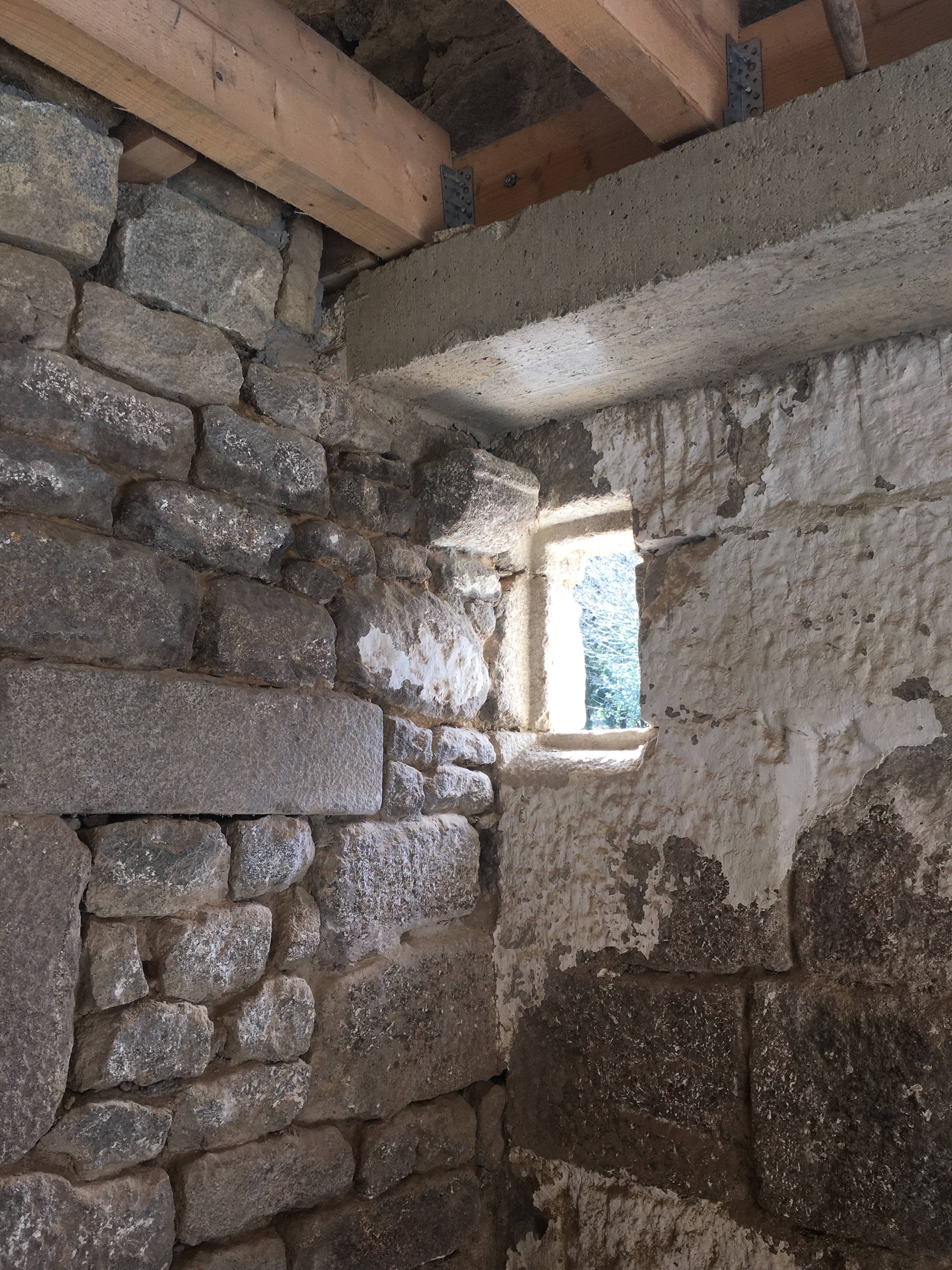 Mais le plus rigolo fût de réouvrir une petite ouverture dans le mur, la Quinzieme sur toute la maison! … Les pierres taillées sont belles et ça apporte un peu de lumière dans ce coin sombre.