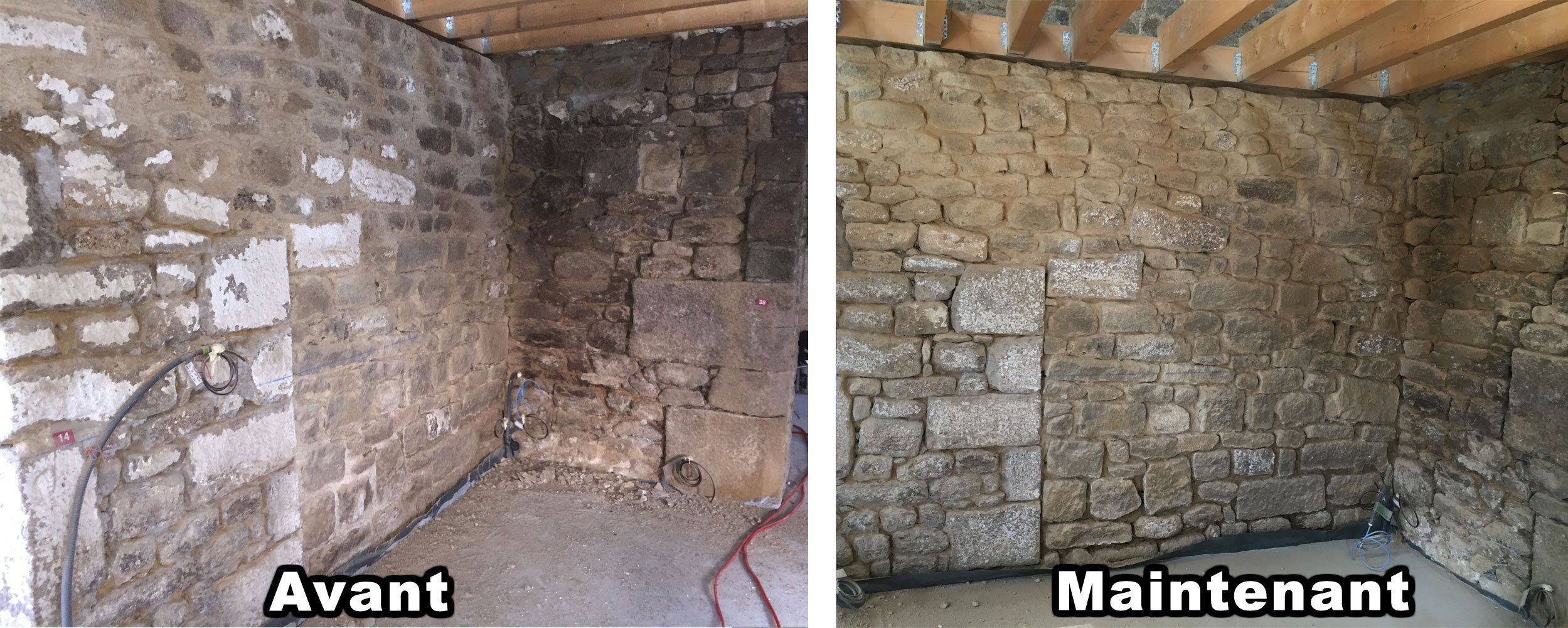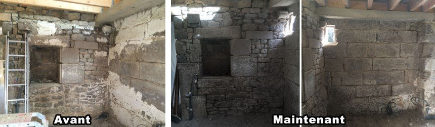 Quasiment la moitié des murs de la pièce principale sont maintenant propres. Voici 3 photos pour se rendre compte du changement.