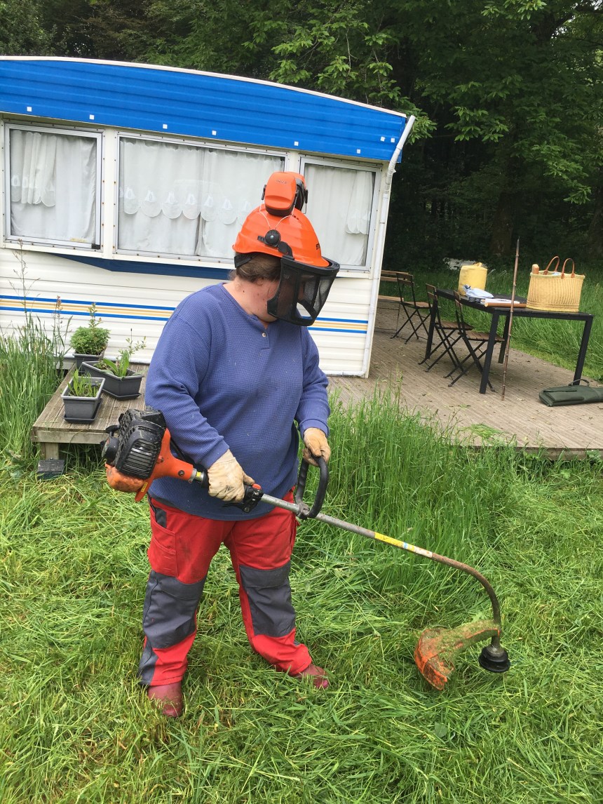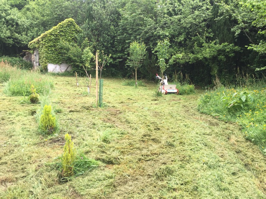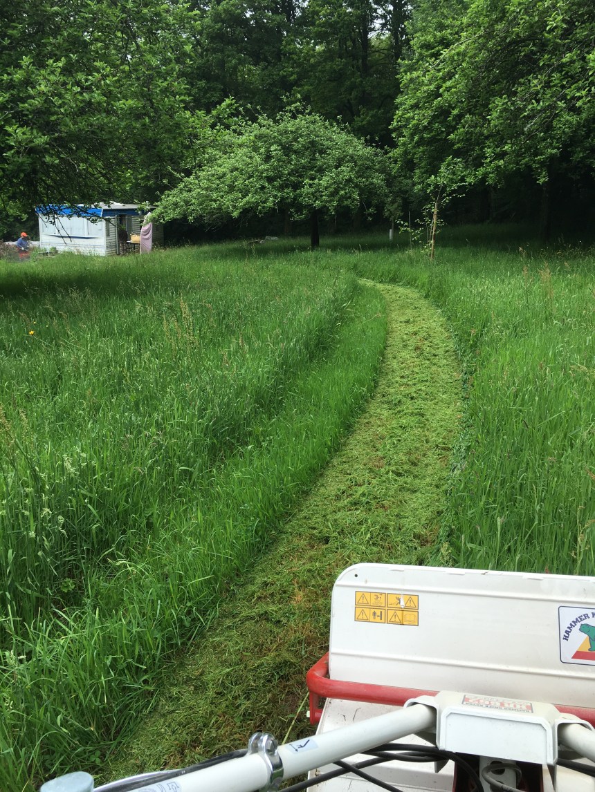 Ce Dimanche 5 Juin, tous les outils coupants étaient de sortie pour venir à bout de l’herbe…. Débroussailleuse à fil, débroussailleuse à Fléaux, tondeuse…. Et il est probable que nous n’ayons pas réussi à tondre plus de 50% du terrain.