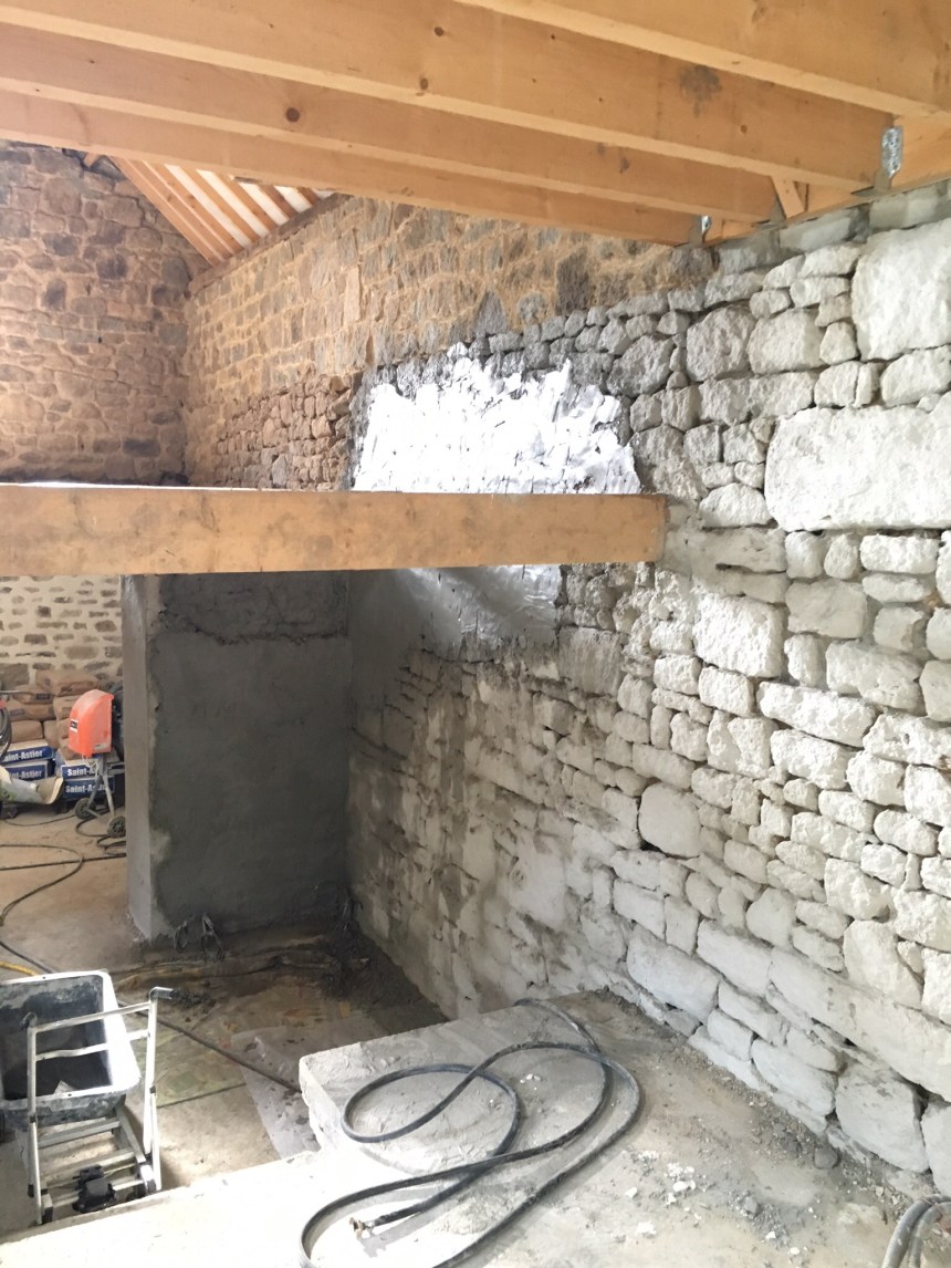 - Est-ce qu’il reste un peu de ciment pour continuer l’enduit intérieur?… Oui, il y en a plus qu’il n’en faudra pour occuper cette journée et rentrer fourbu!