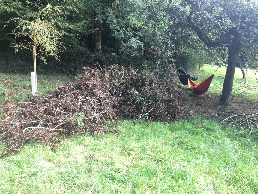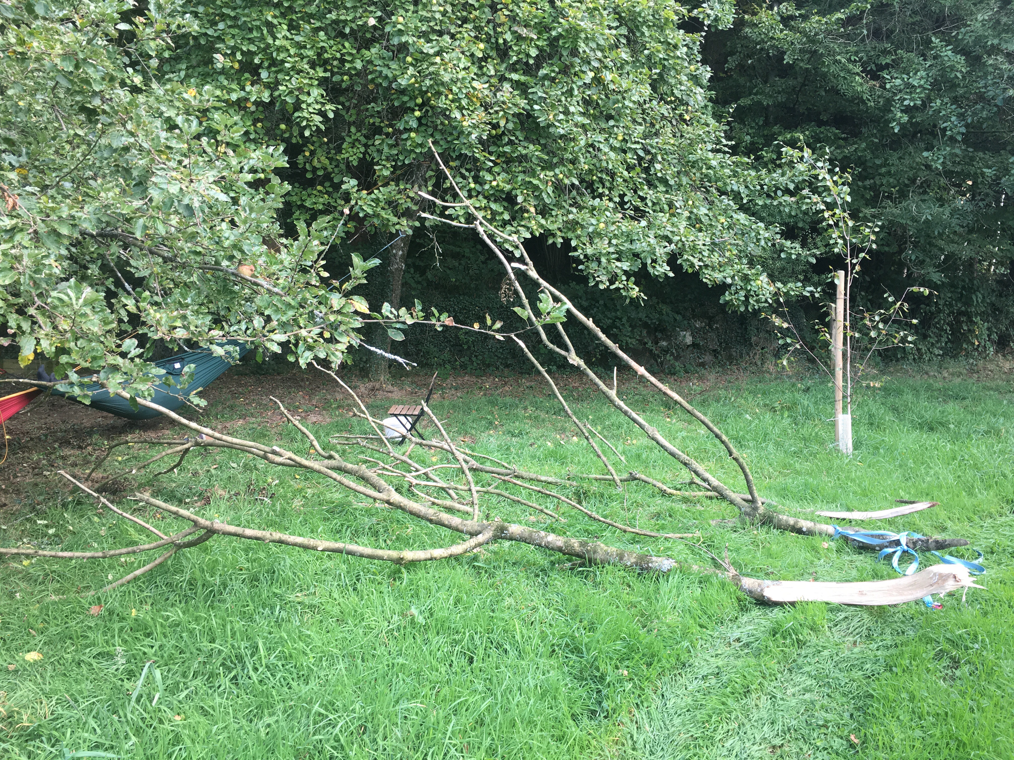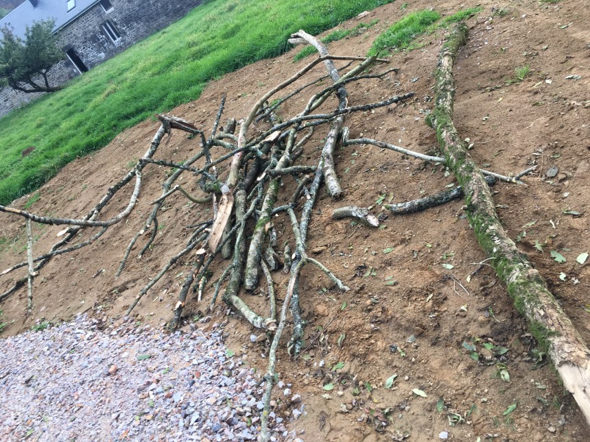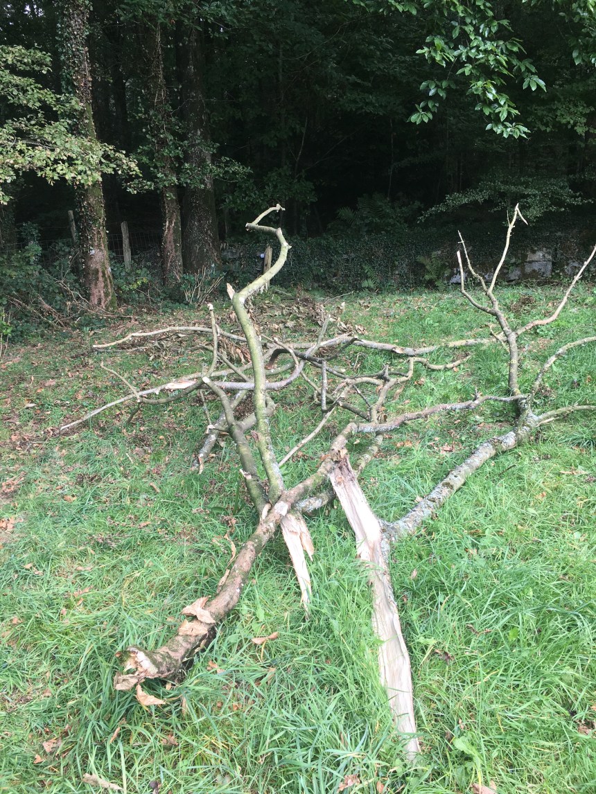 … pour effacer toutes les traces de la « mini tornade » du mois dernier. En effet, au delà des 3 gros arbres tombés chez le voisin, d’autres arbres du terrain avaient aussi souffert, en perdant de grosses branches (certaines sont même encore « coincées » dans les arbres)