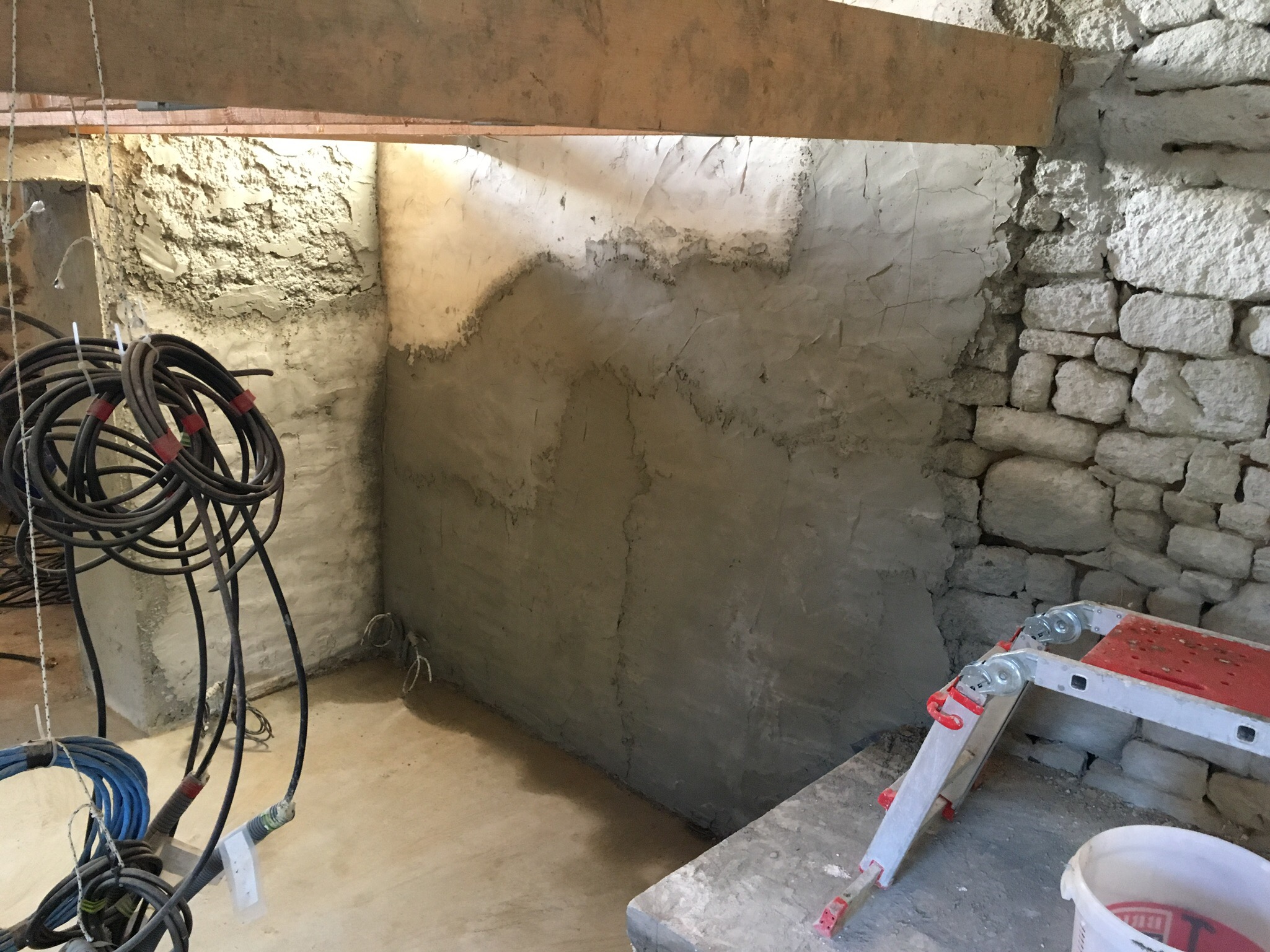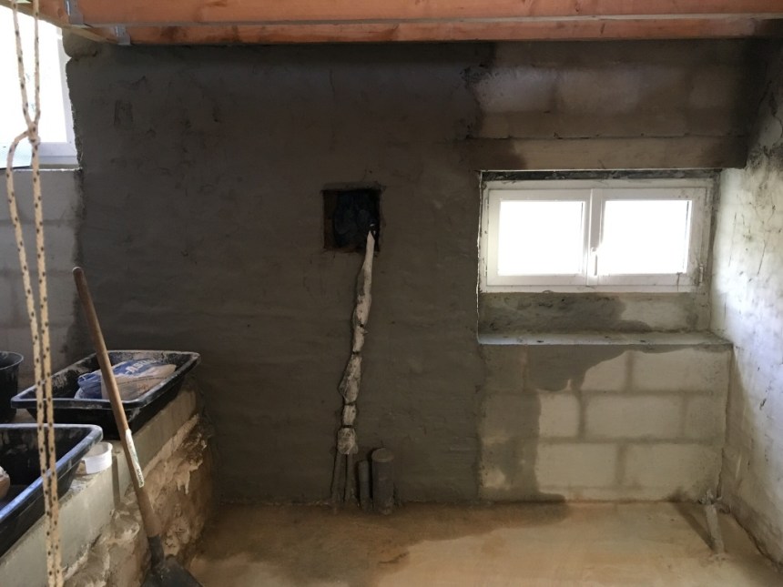 Un vrai plaisir que de faire le ciment sous le soleil dehors pour aller enduire les murs intérieurs.