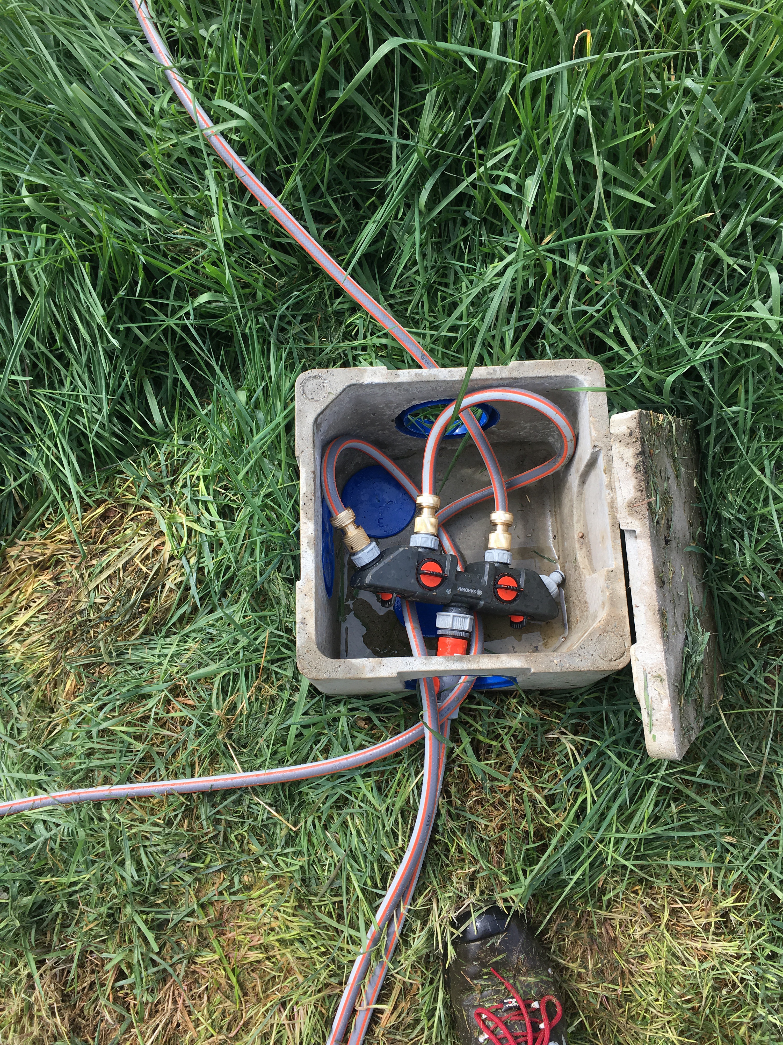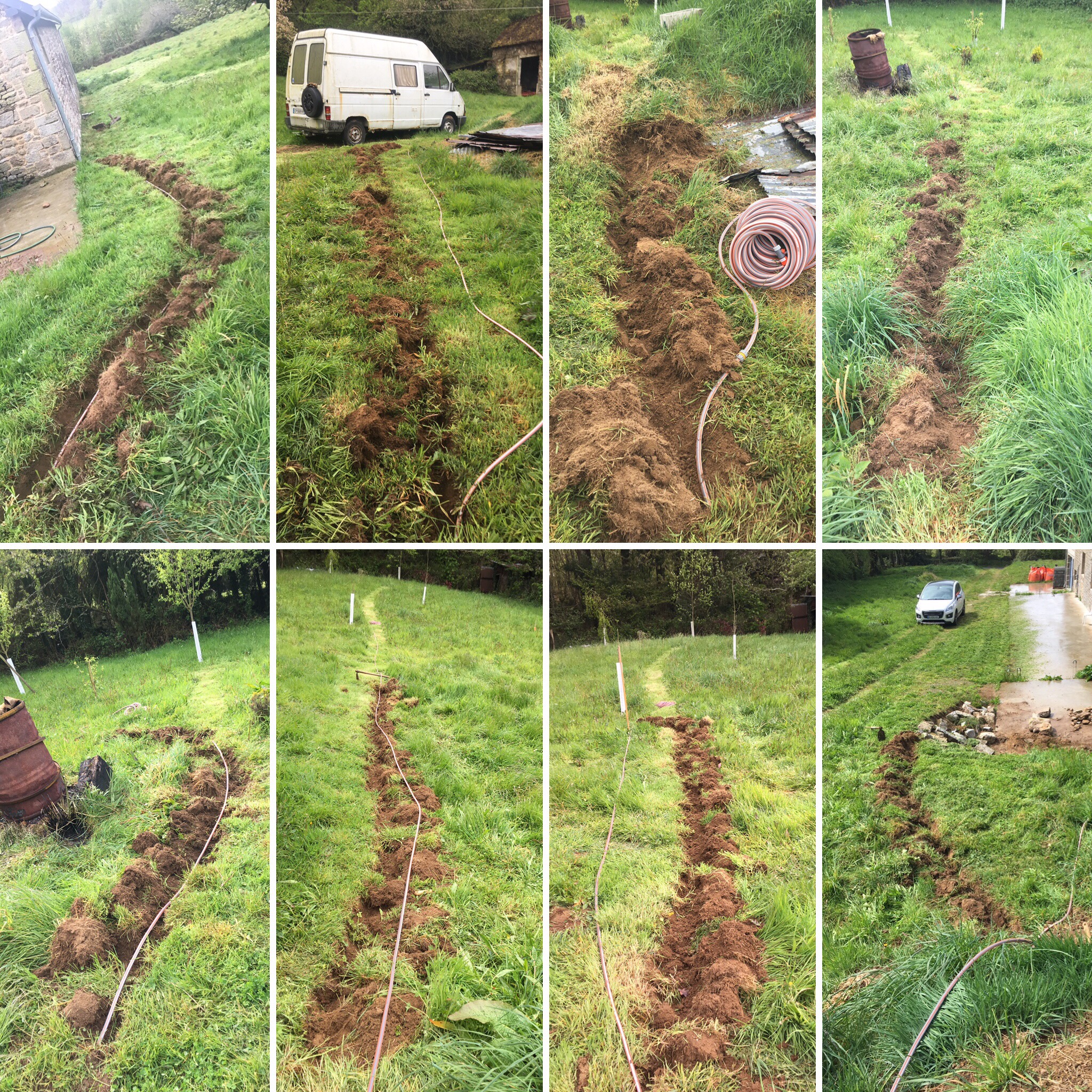 Le deuxième jour a permis de commencer l’installation du système d’arrosage… l’idée est de dérouler du tuyau d’arrosage vers les differentes zones de plantation, et d’enterrer le tuyau au mieux pour eviter de le couper lors de la tonte de l’herbe.
