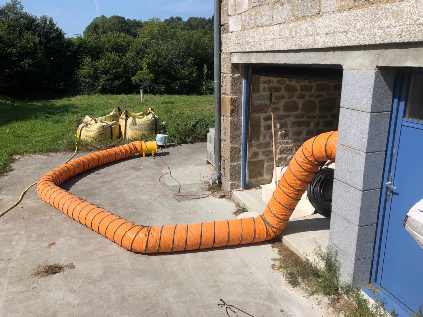 Il aura même fallu déboucher le trou dans la chape de béton intérieure pour avoir accès à l’extrémité de la gaine.