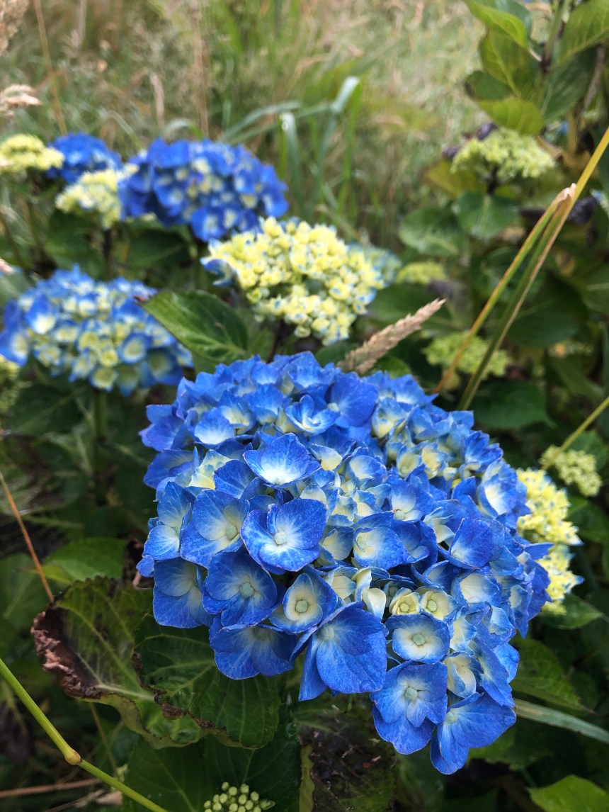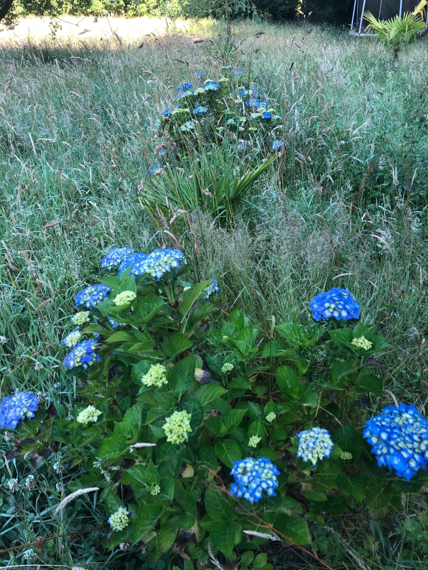 Tout a encore bien poussé sur le terrain, pour preuve les hortensias ont sorti de jolies fleurs, certes ils ont eu droit au traitement privilégié de l’arrosage automatique avec les tuyaux poreux qui serpentent à leurs pieds.