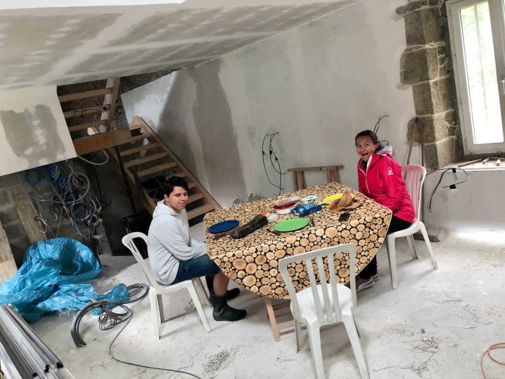Nous avons installé une table dans le futur salon de Le Gast, et ce fût très agréable de pouvoir ainsi tester la maison. Il y a de l’espace et de la luminosité, très sympas d’y manger!