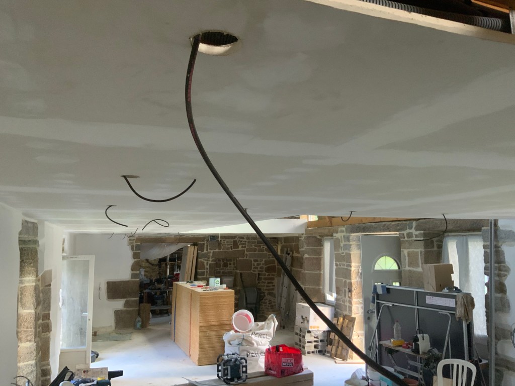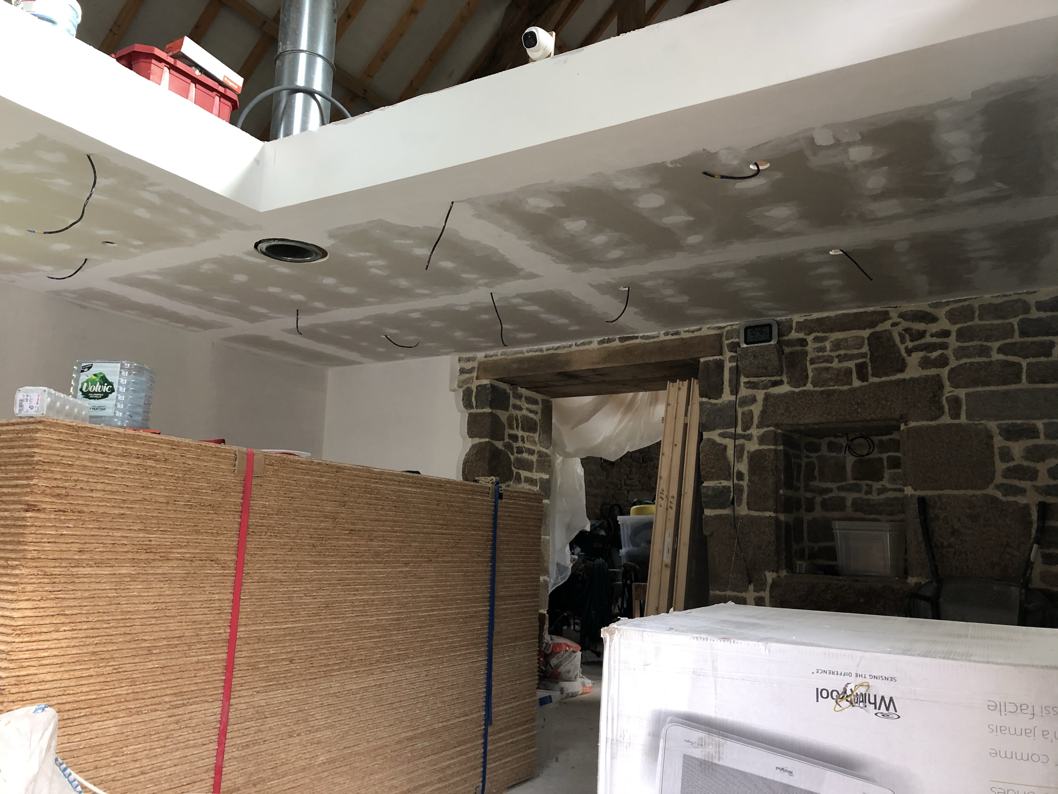 Un certain nombre de câbles pendouillent maintenant du plafond, c’est bon signe, on va pouvoir envisager la peinture dans peu de temps.