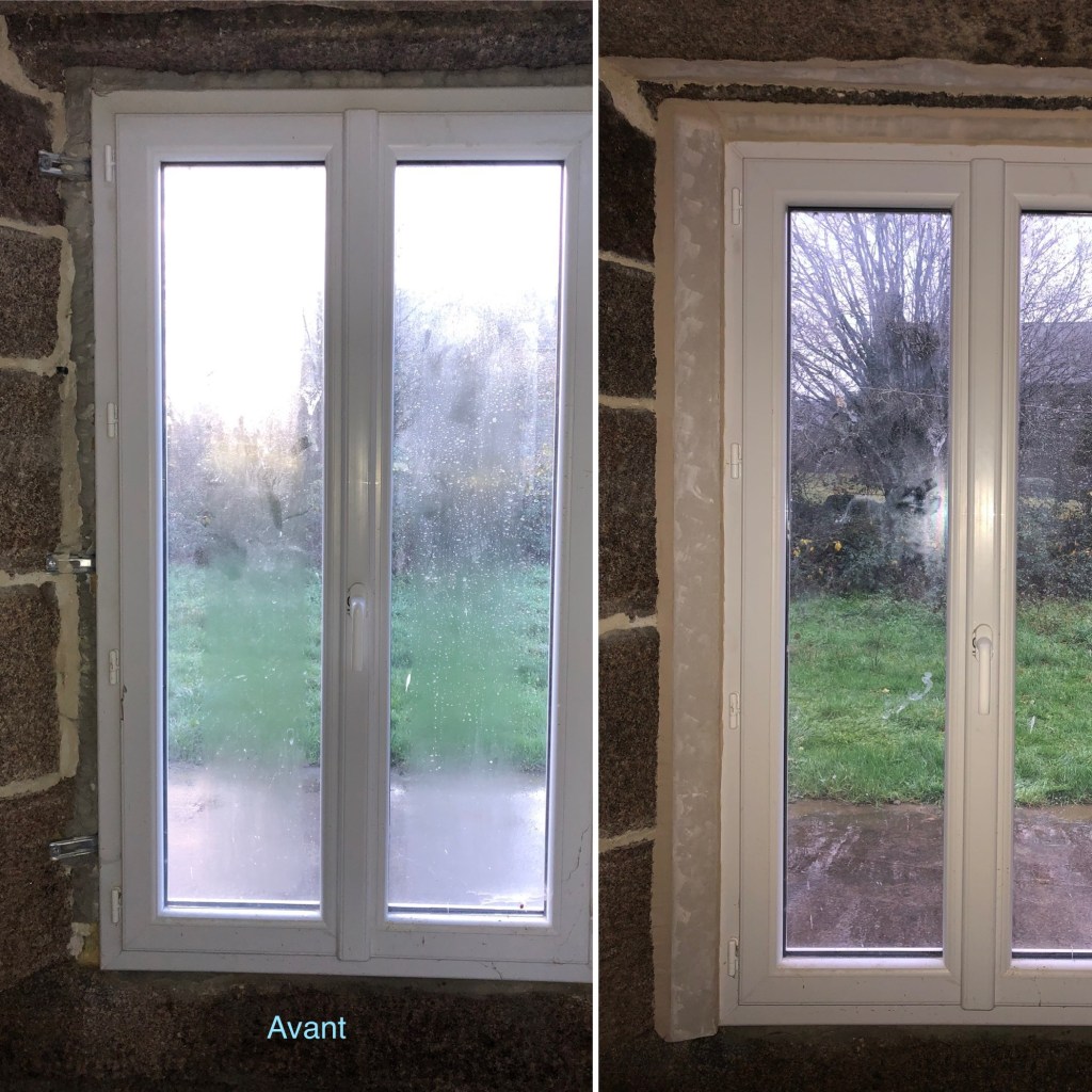 C’est en vérifiant l’écoulement de l’eau du cadre de la fenêtre que j’ai découvert que tous les trous, sous des caches plastiques, étaient bouchés avec le ciment ayant servi au scellement de la fenêtre… problème résolu!