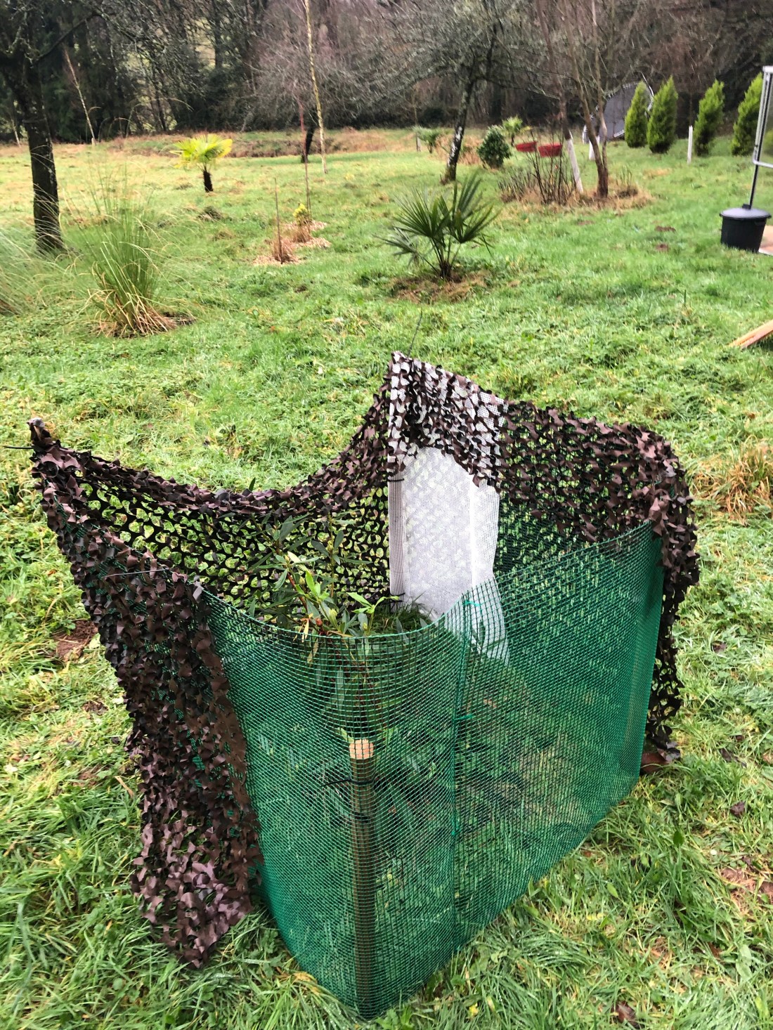 Pendant ce temps, Béatrice bricole une protection du rodondindron pour éviter qu’il ne continue à servir de repas aux chevreuils.