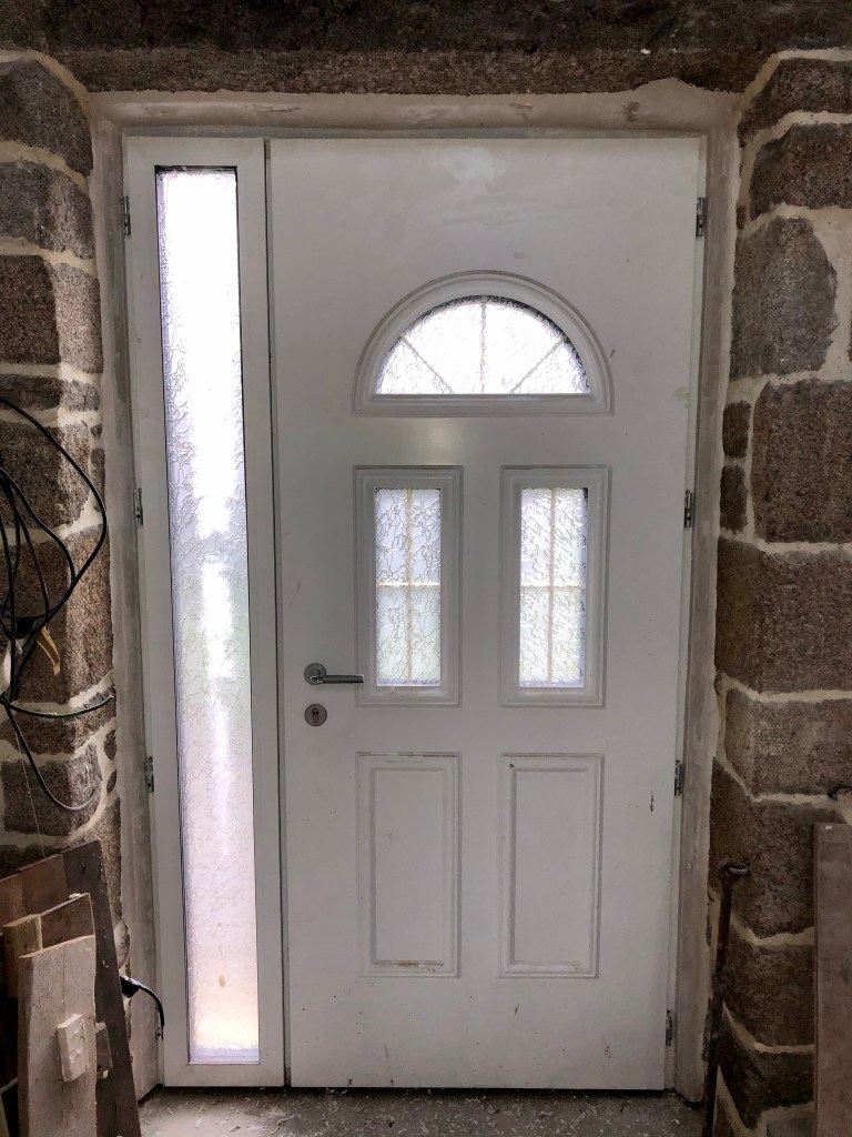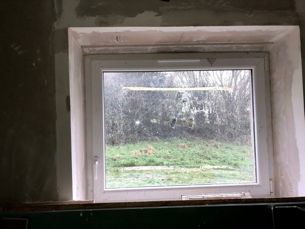 La température ambiante ne m’aura pas empêché de ponser les habillages des fenêtres enduits la semaine dernière. J’ai posé l’habillage de la porte d’entrée ainsi que de la fenêtre de la future cuisine.