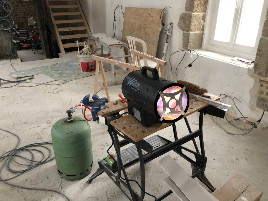 J’en profite pour tester mon nouveau chauffage à gaz. Il améliore un peu les conditions de travail, c’est mieux que rien!
