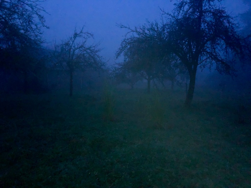 Parti tôt le matin, j’ai roulé de nuit et dans le brouillard… il est aussi présent à Le Gast… l’ambiance est étrange alors que le soleil peine à se lever.
