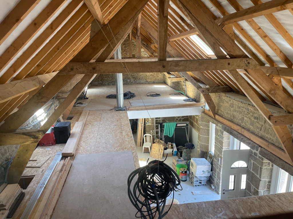 Il aura fallu au moins 4 jours pour poser les plaques OSB sur les solives du 1er étage. Toutes les surfaces du premier étage sont maintenant aisément accessibles sans devoir jouer les équilibristes sur les solives.