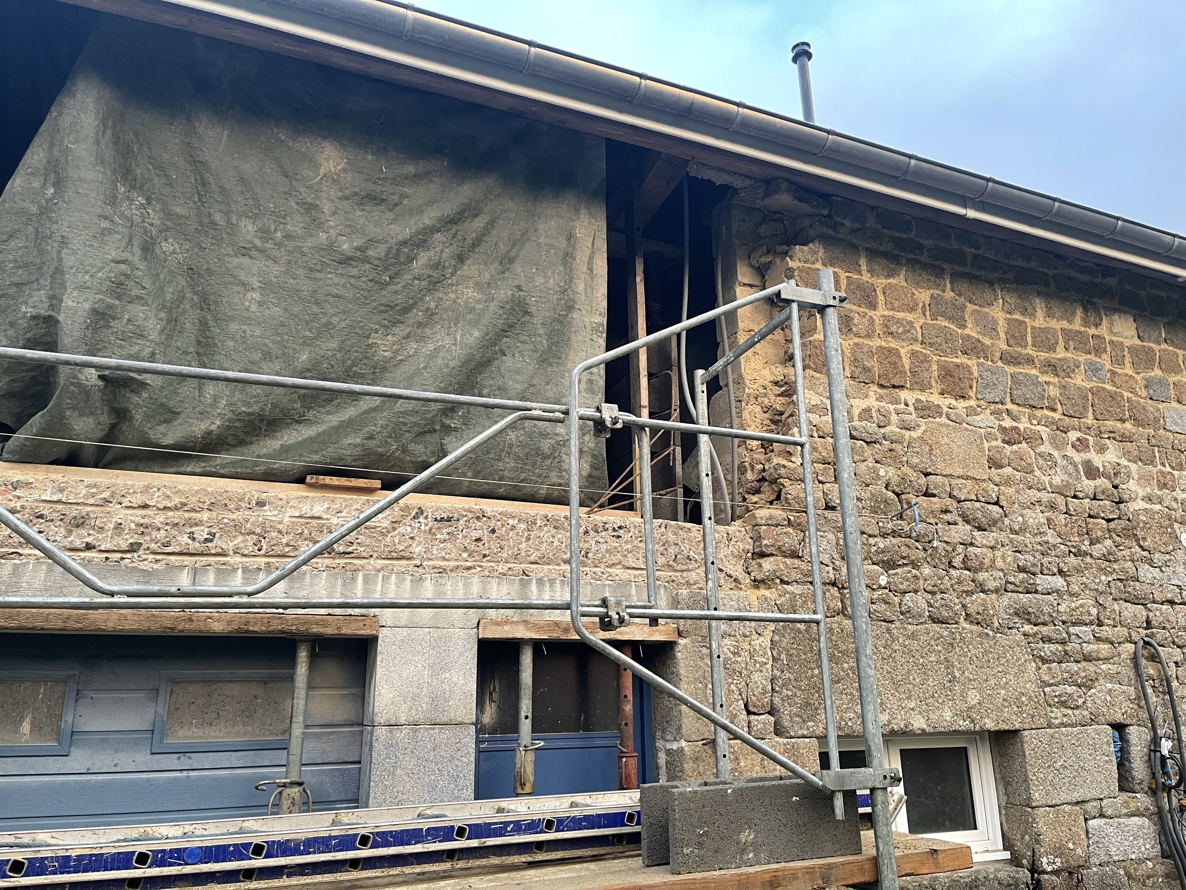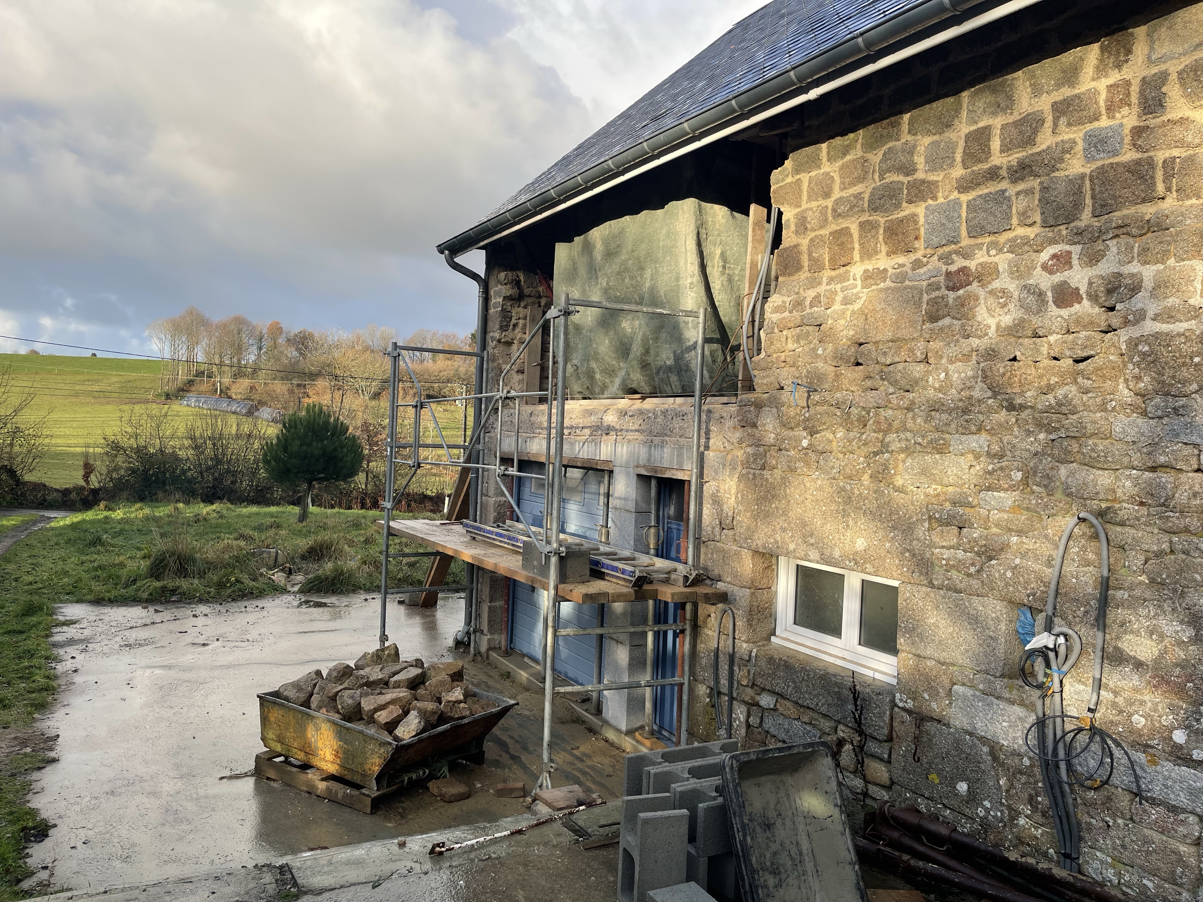 Le maçon a commencé le travail sur le mur à refaire, l’ouverture sur la façade est assez impressionnante!