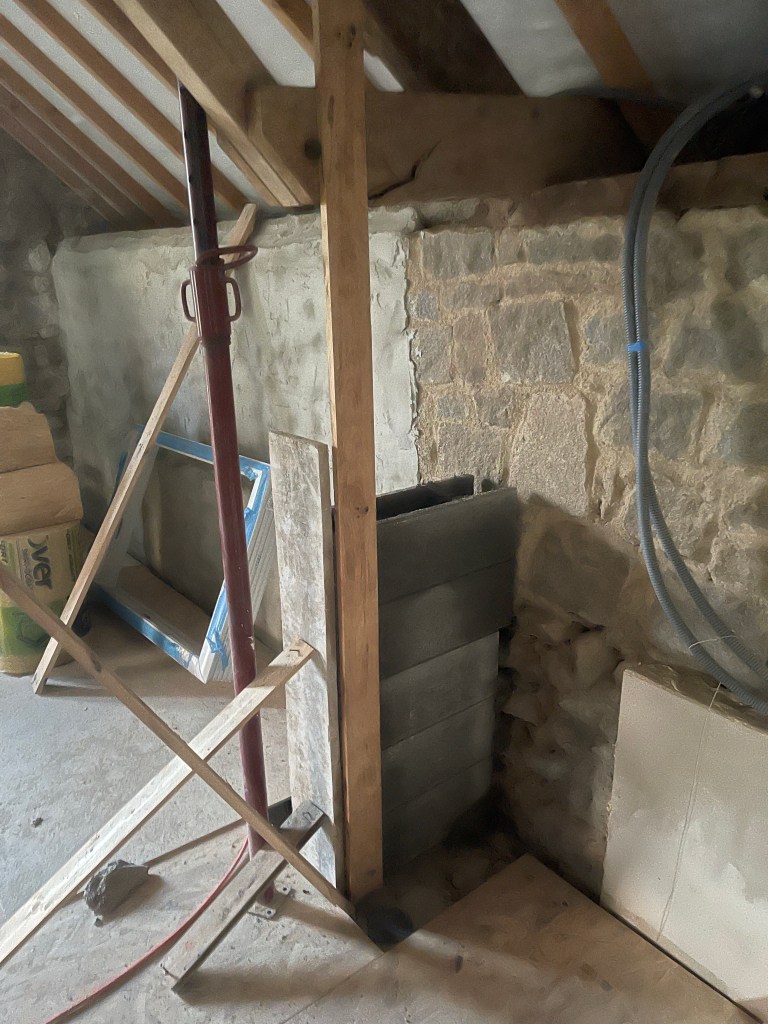 Tout ceci devrait encore bien avancer la semaine prochaine. Une fois le mur reconstruit, le plaquiste pourra finir le dernier tronçon de l’isolation.