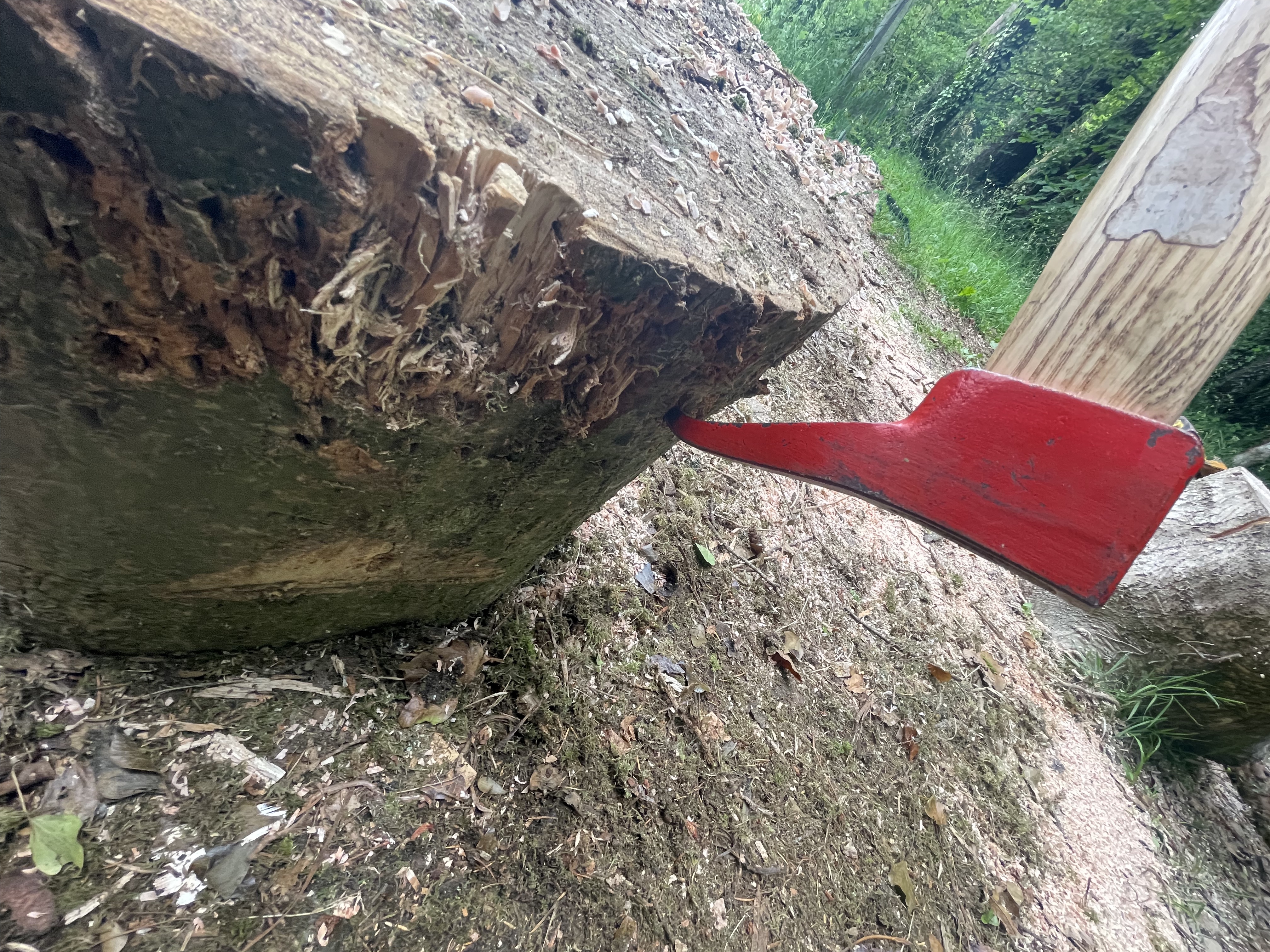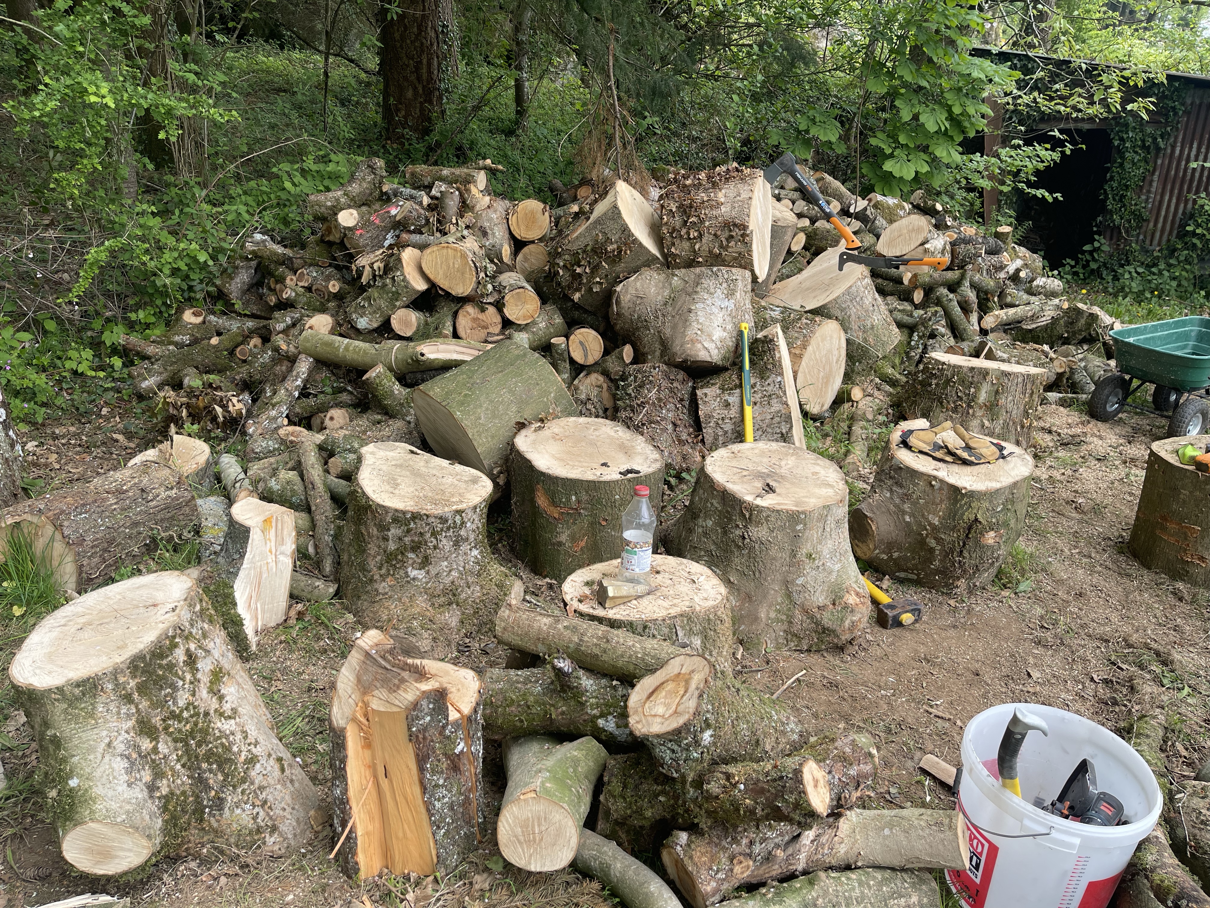 Les outils ont bien servis, entre les coins, les masses, la tronçonneuse, la fendeuse hydraulique.
