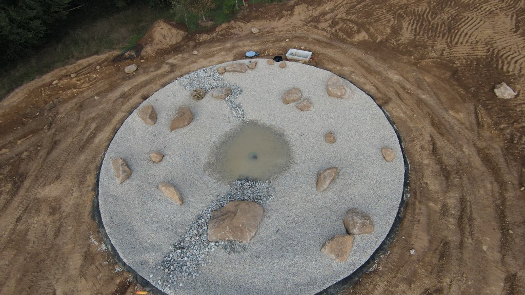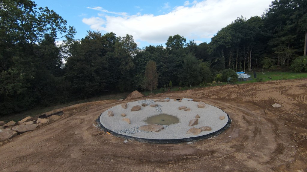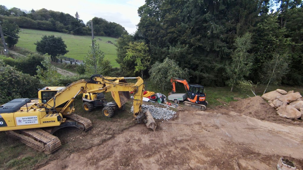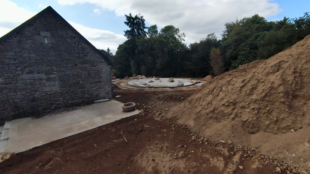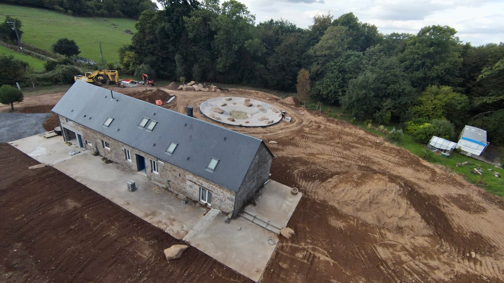 Je termine ma journée avec un petit tour en drone sur le terrain, histoire de constater, du ciel, des progrès rèalisés par les paysagistes cette semaine.