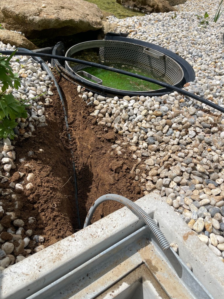 Nous avons aussi ajouté 3 carpes koï, baptisées par Béatrice: Bill (orange et blanc), Hector (couleurs sombres) et William (l’autre du coup!)