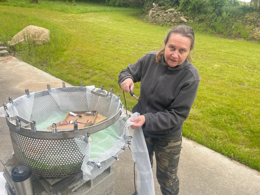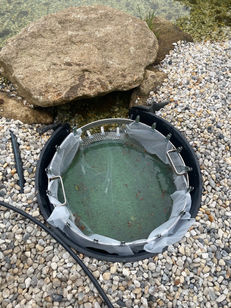 Coté bassin, les fleurs des arbres environnants tombent dans l’eau et se retrouve piégées dans le filtre du skimmer qu’il faut nettoyer régulièrement. On va tenter de rajouter un film filtrant qui sera plus simple à rincer.