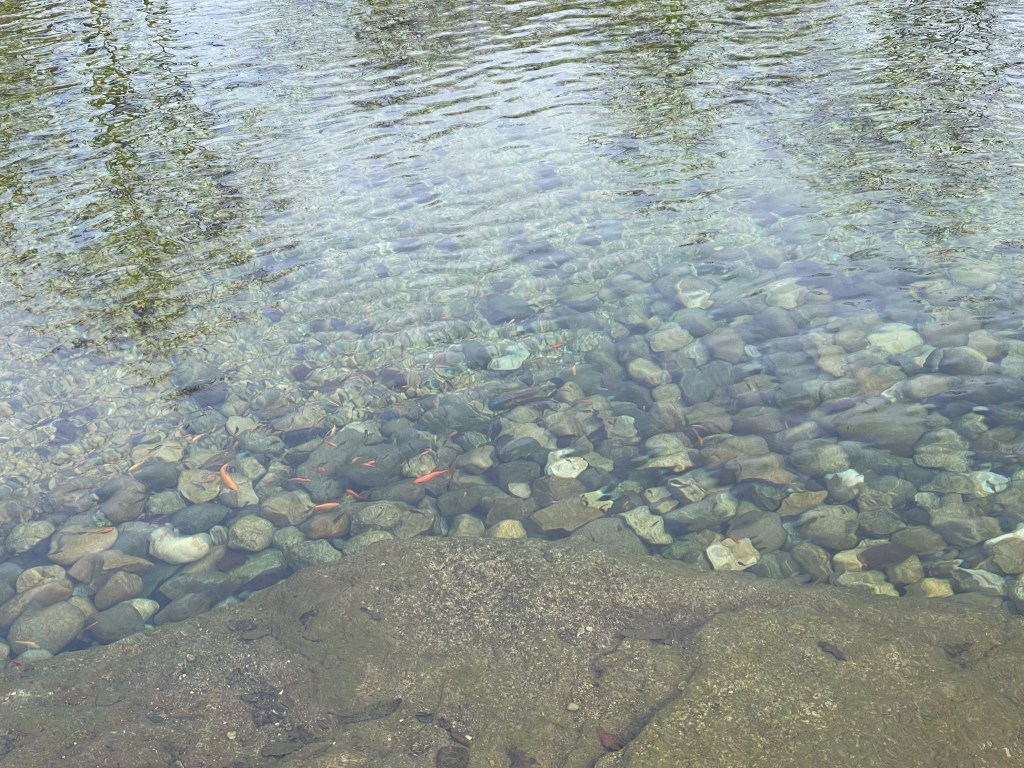 Béatrice avait tenté de les compter à l’oeil (pas simple!) à la fin de l’été… environ 70 poissons à l’époque, avec toujours une carpe Koï et 3 poissons rouges survivants du premier jour.
