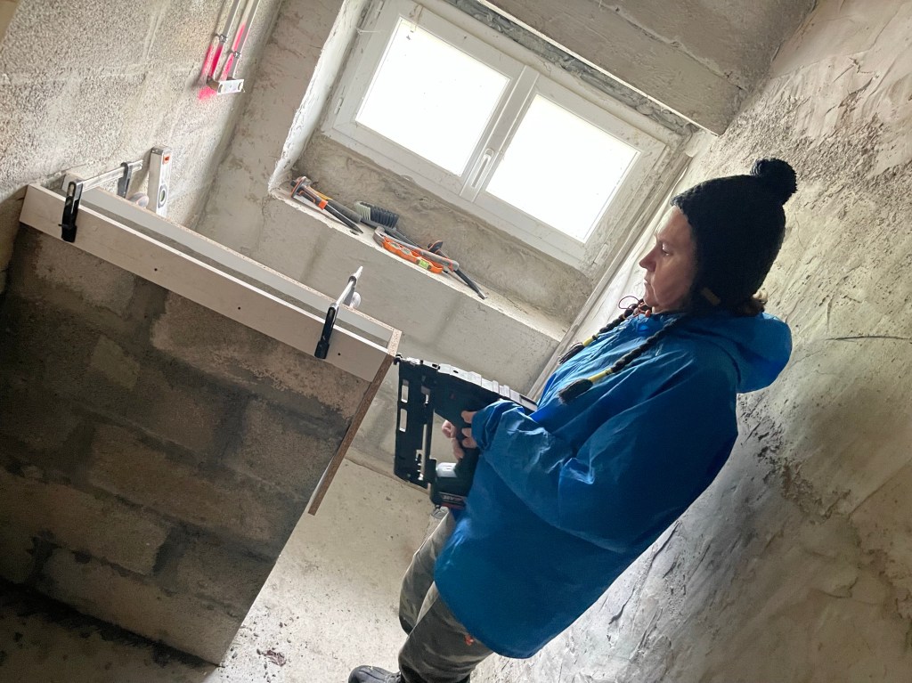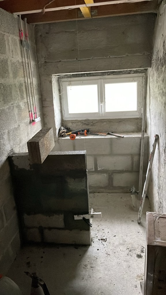 Au niveau de la douche du rez-de-chaussée, il manque encore un petit muret pour séparer la zone de douche de la vasque.
