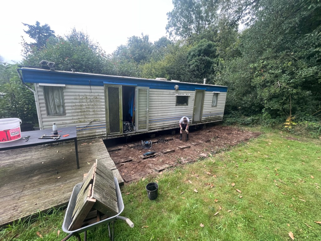 Tom et Léo avaient commencé à démonter la structure en bois de la terrasse du Mobil-Home. Aujourd’hui, l’objectif est de terminer le travail.