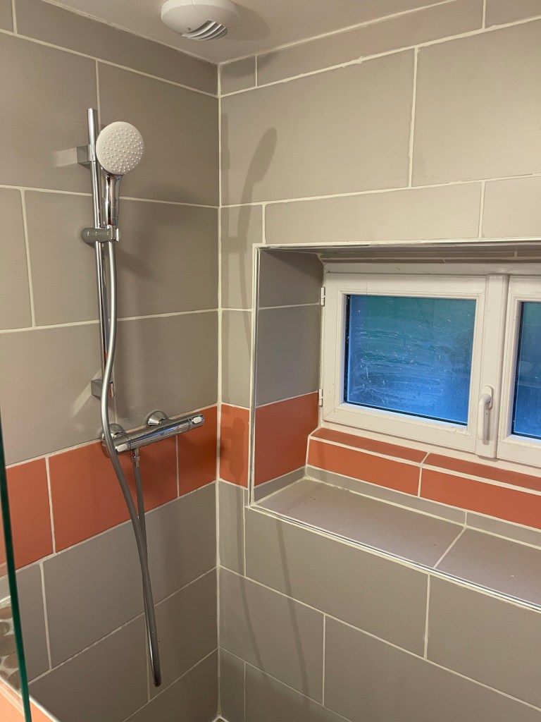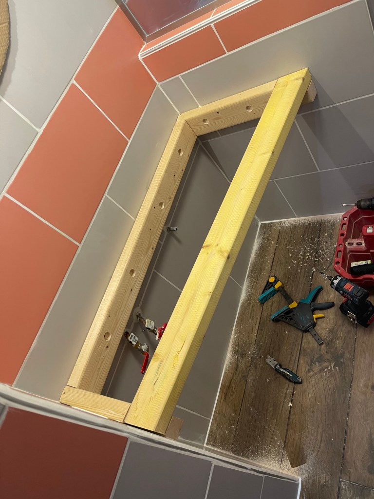 Je termine la journée en installant le système de douche… on touche au but!. Un peu d’électricité pour la prochaine fois!
