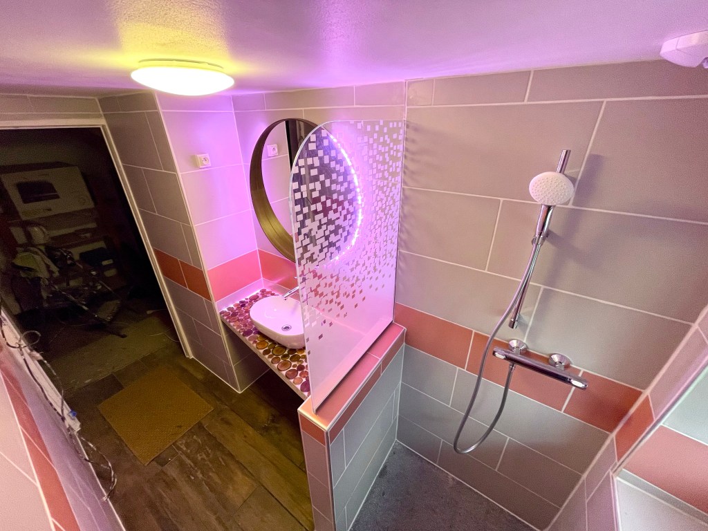 Je fais quelques photos avec une couleur un peu plus soft (et moins Barby Girl). Le résultat est assez satisfaisant et valait bien les 9 mois que nous y avons passé depuis la pose du receveur en granit.
