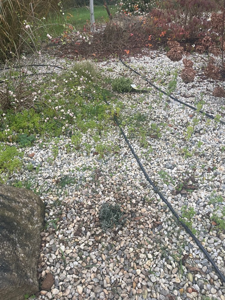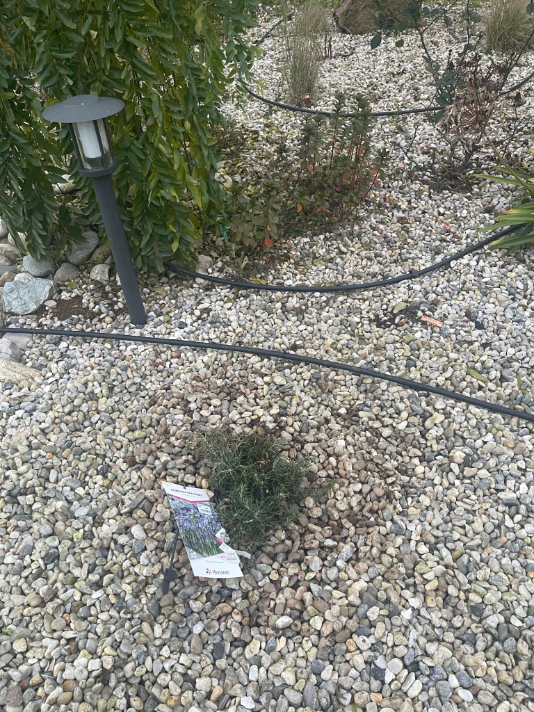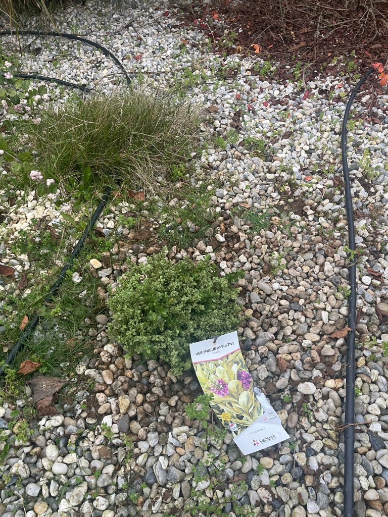 Pendant ce temps là, Béatrice fera ses trous à elle pour planter autour du bassin 5 nouvelles plantes (lavande, véronique et romarin), elles combleront certains espaces laissés par des plantes qui n’ont pas survécu.