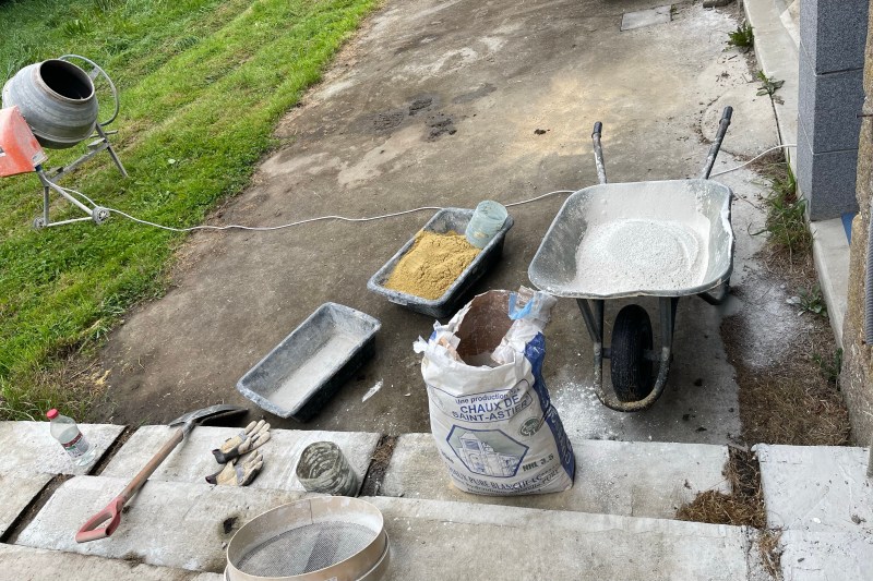 Toute la faïence est posée dans les toilettes, c’est donc le moment de faire les joints, qui vont donner à la pièce son look définitif! Encore un peu dans des positions de quadrupède, et obligé de « jouer de l’éponge » plusieurs fois, finalement ce n’est pas un travail fe tout repos, mais le résultat…