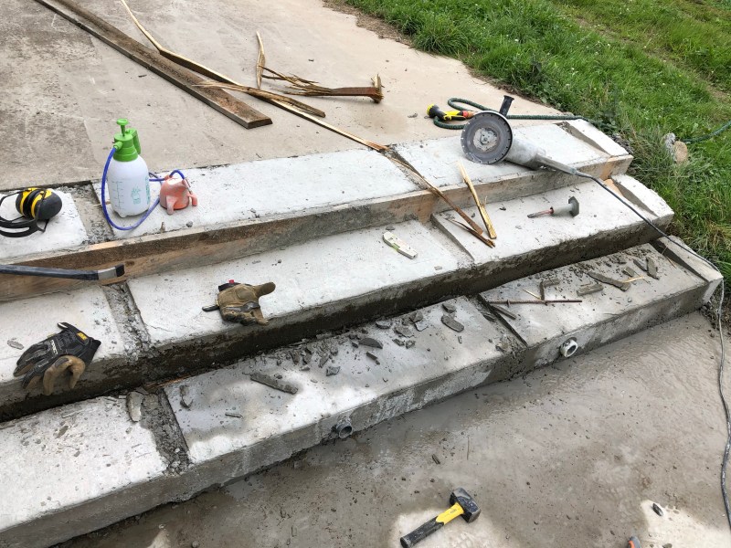 Tom et Léo avaient commencé à démonter la structure en bois de la terrasse du Mobil-Home. Aujourd’hui, l’objectif est de terminer le travail. Je m’occupe de découper les lames en bois avec ma scie sabre. On fait un gros feu pour se débarrasser de ce bois en bien mauvais état. Jamais nous avions fait un…