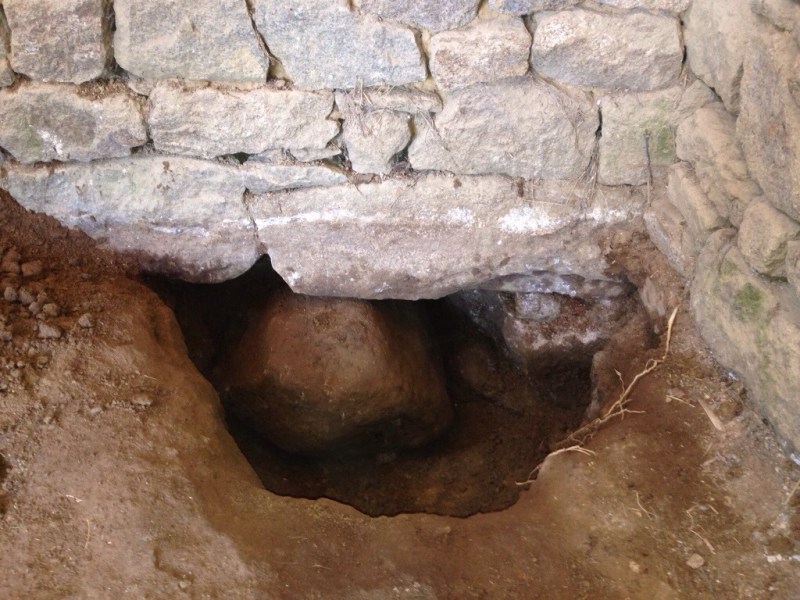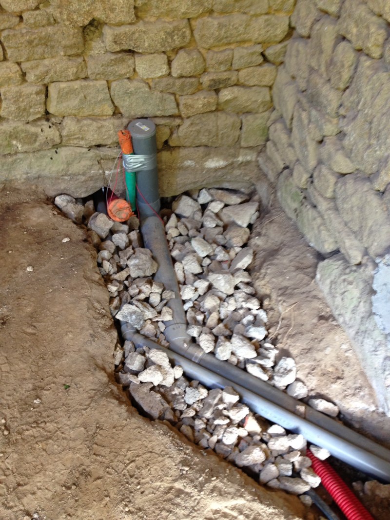 Encore un week-end rallongé pour le 11 Novembre, et l’occasion de venir travailler 2 jours à Le Gast. L’accueil fût un peu froid et humide! Au programme le passage de certains câbles qui nécessitent de tronçonner quelques pierres sur le haut de murs intérieurs. J’ai pu tester mon système autonome (c’est à dire sans besoin…